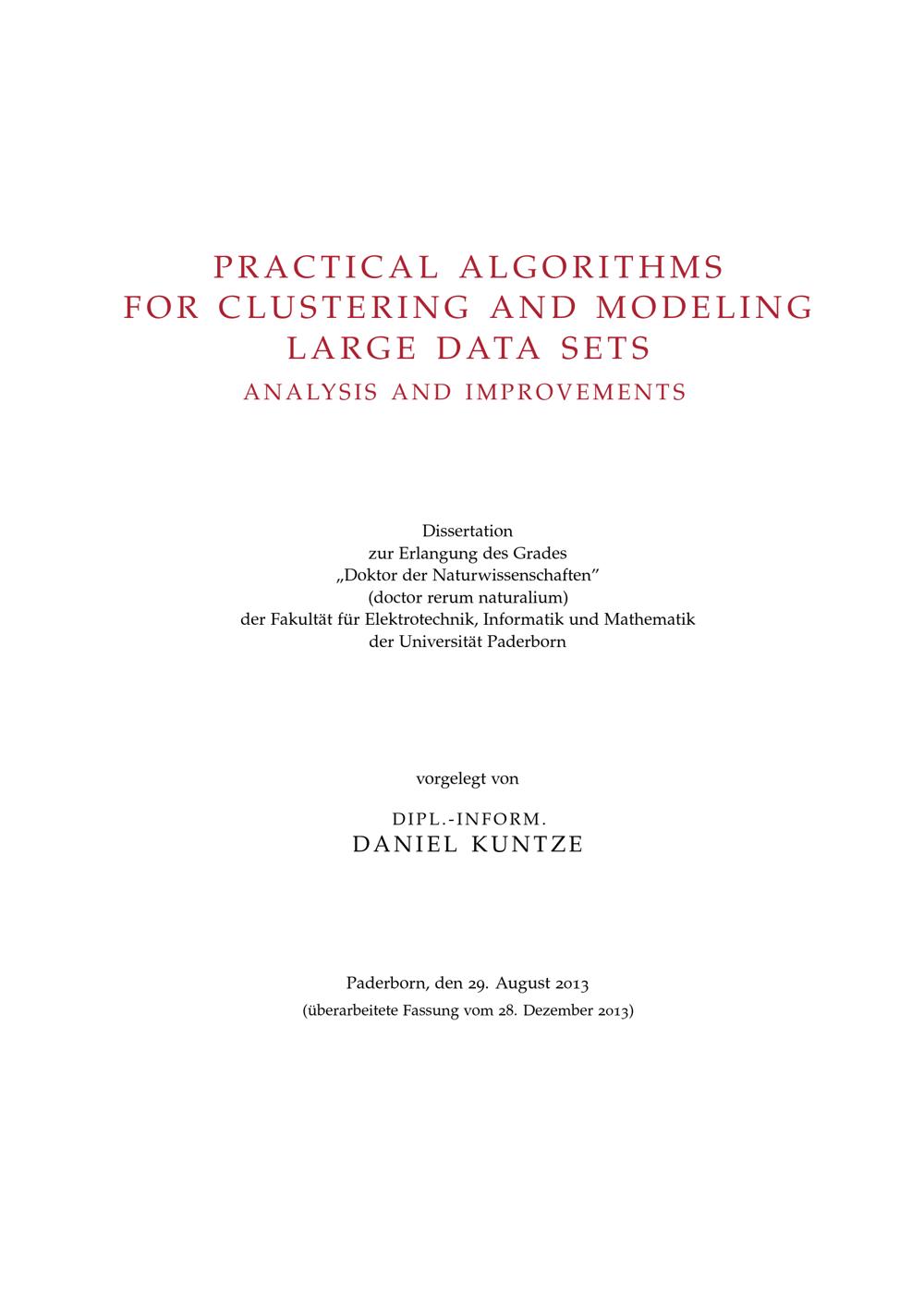 Practical algorithms for clustering and modeling large data sets : analysis and improvements