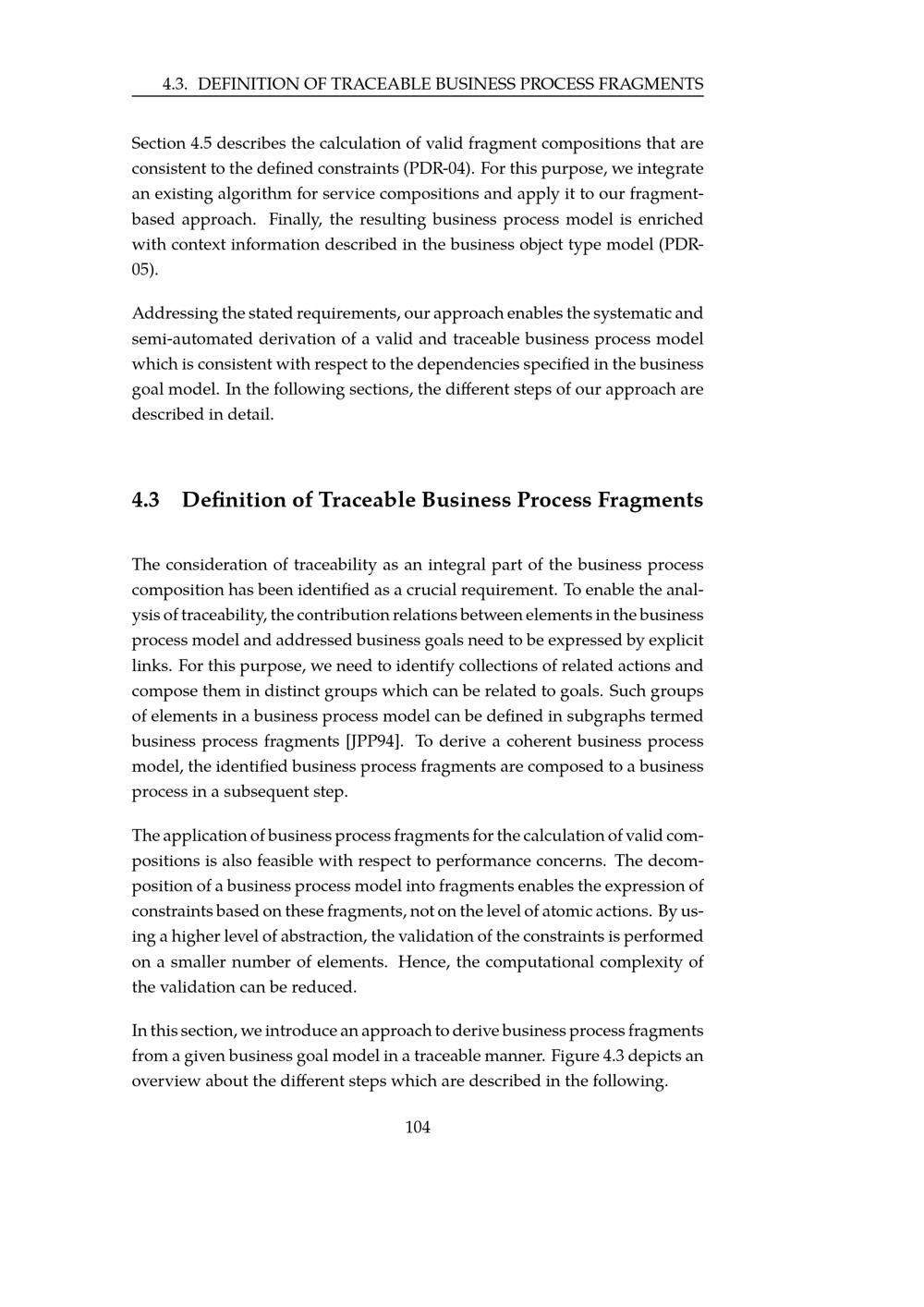 Definition of Traceable Business Process Fragments