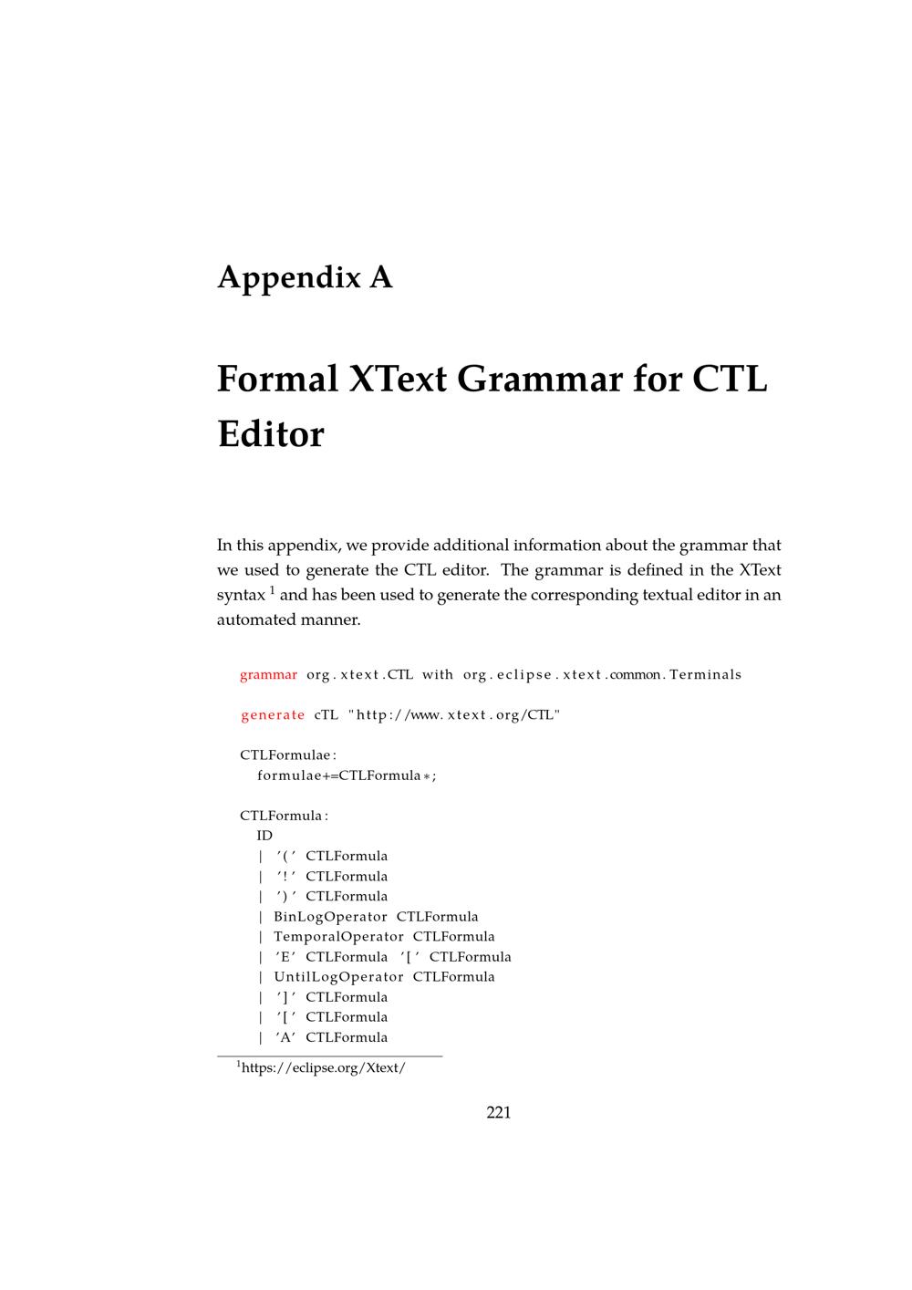 Formal XText Grammar for CTL Editor