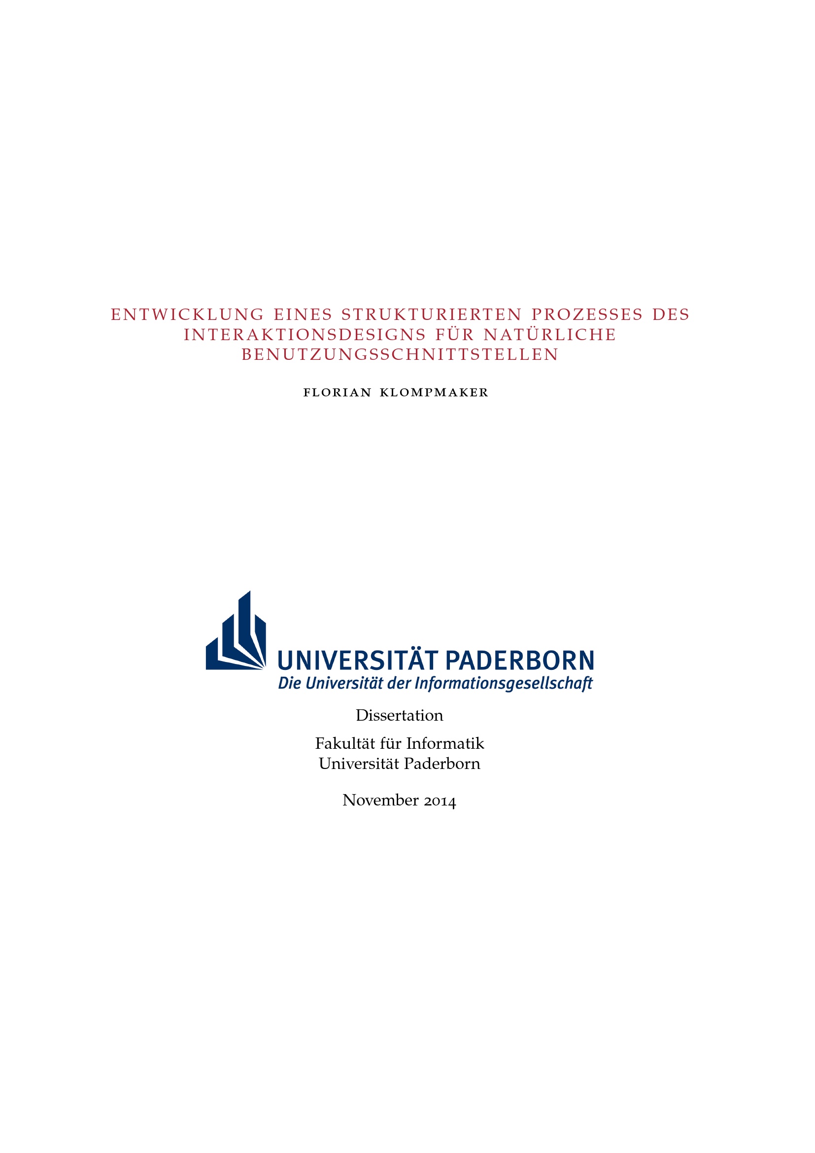 Entwicklung eines strukturierten Prozesses des Interaktionsdesigns für natürliche Benutzungsschnittstellen