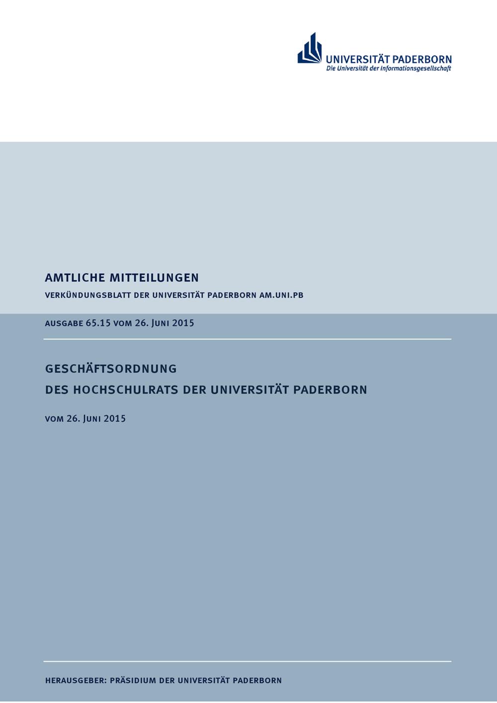 Geschäftsordnung des Hochschulrats der Universität Paderborn : vom 26. Juni 2015