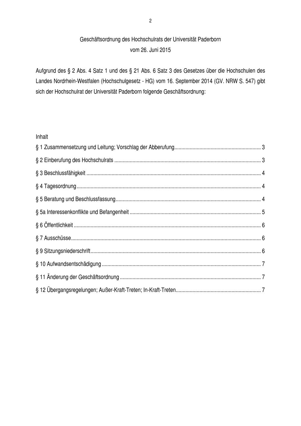 Geschäftsordnung des Hochschulrats der Universität Paderborn : vom 26. Juni 2015