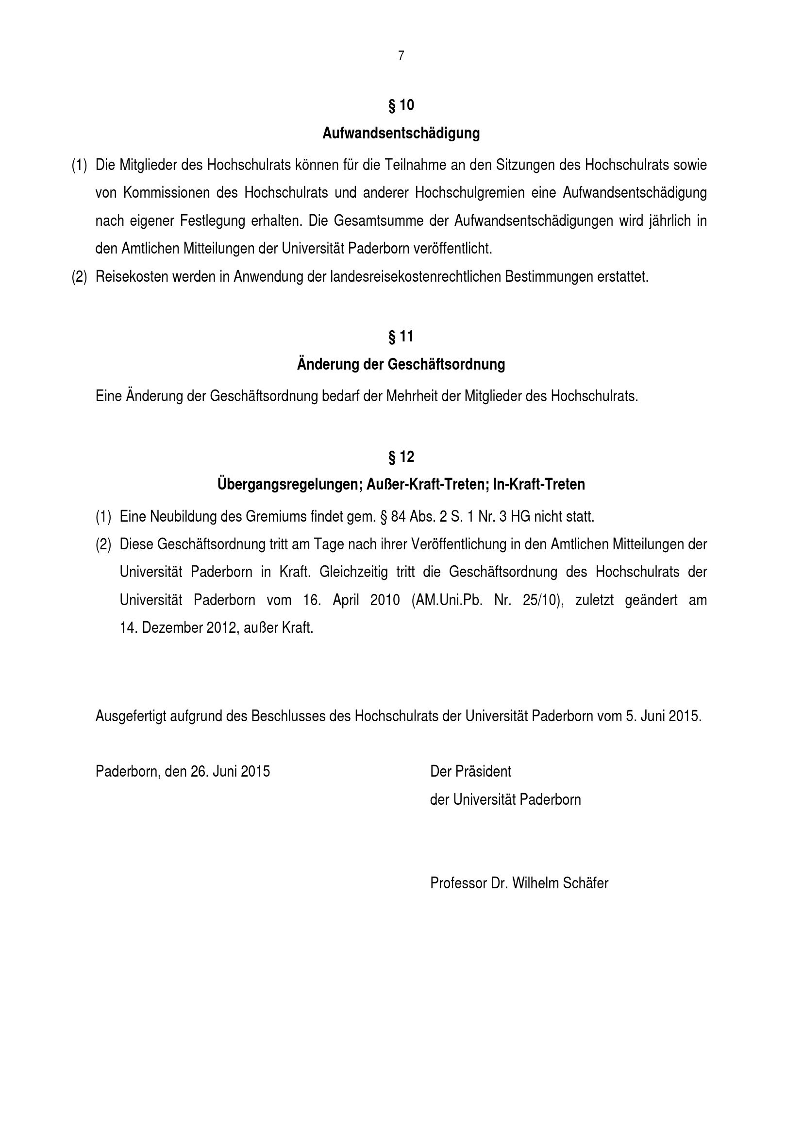 Geschäftsordnung des Hochschulrats der Universität Paderborn : vom 26. Juni 2015