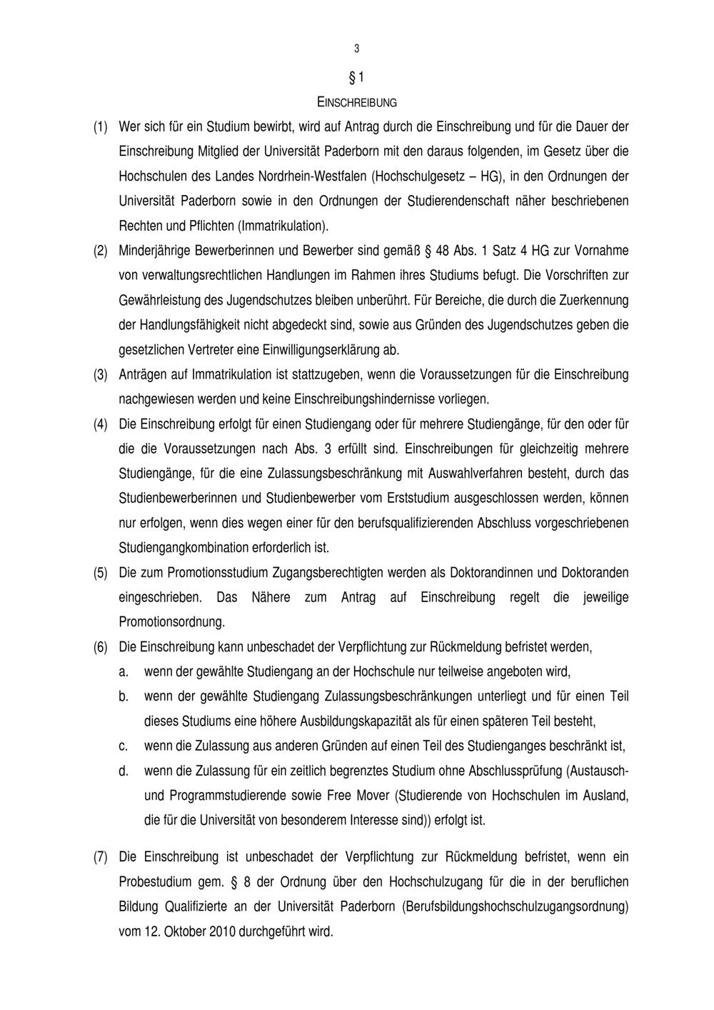 Einschreibungsordnung der Universität Paderborn