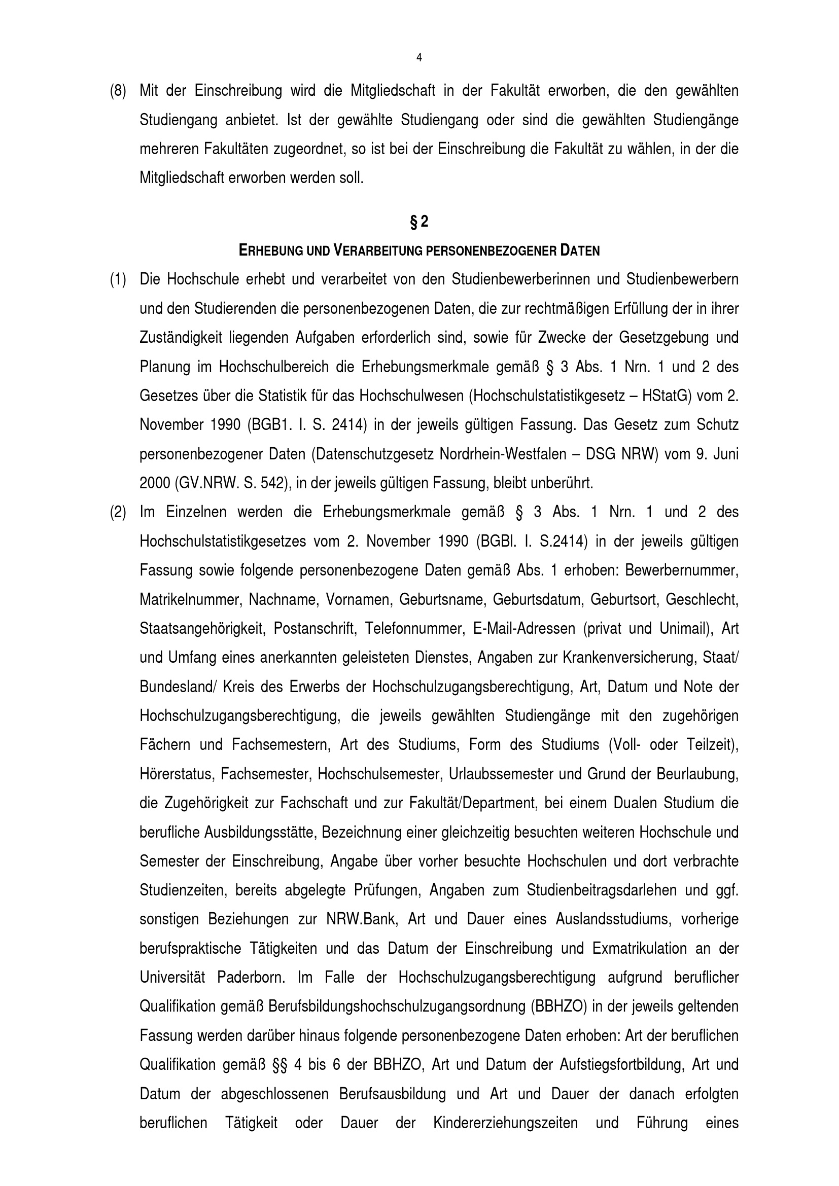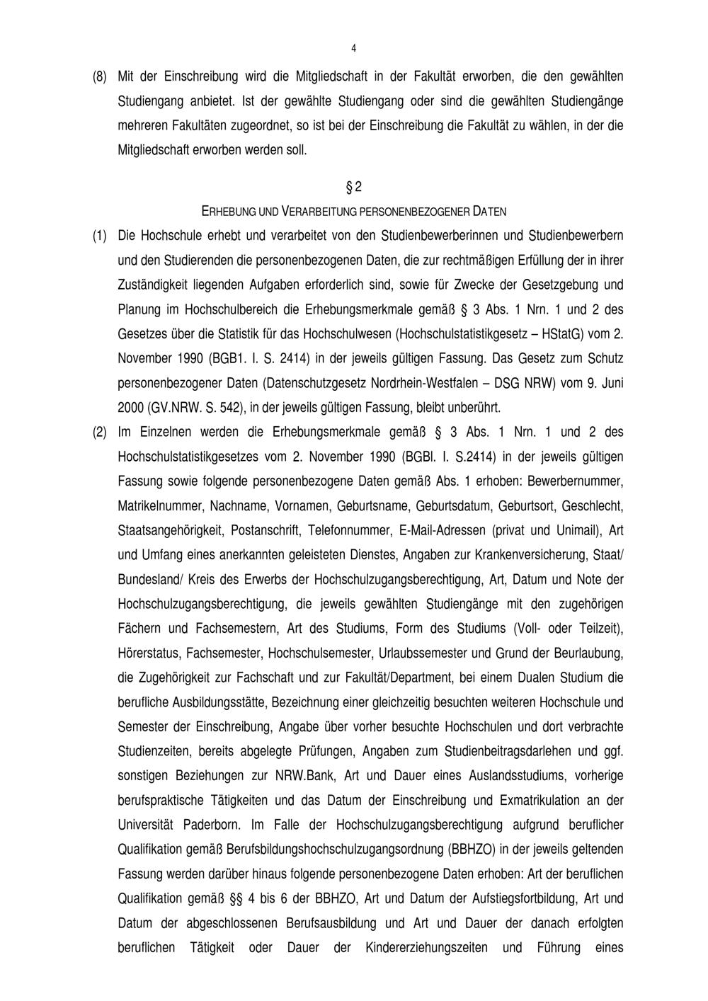 Einschreibungsordnung der Universität Paderborn : vom 26. Mai 2015