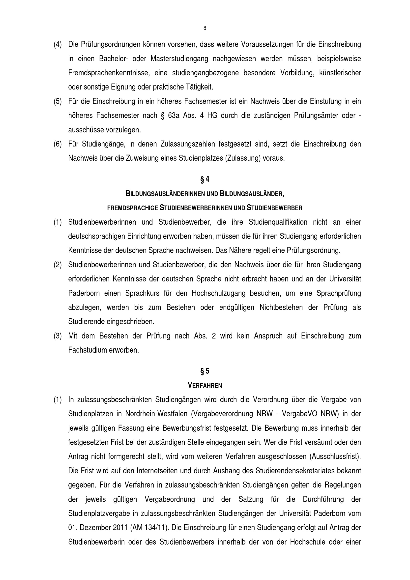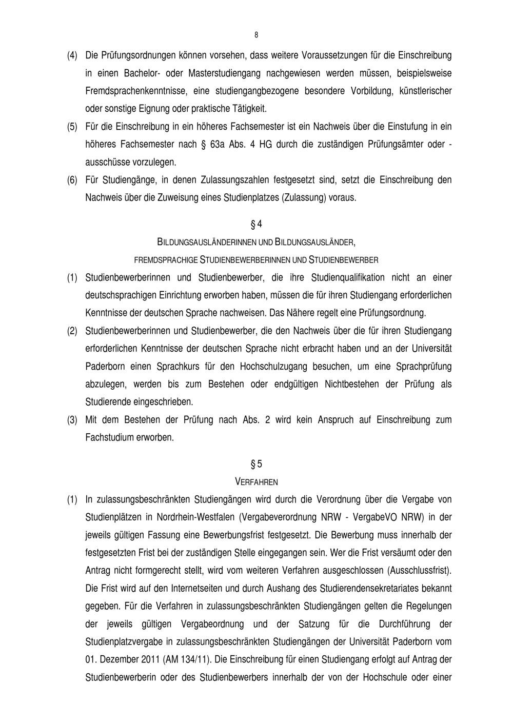 Einschreibungsordnung der Universität Paderborn