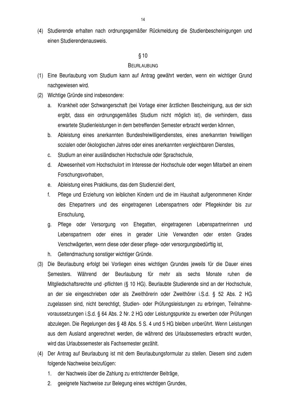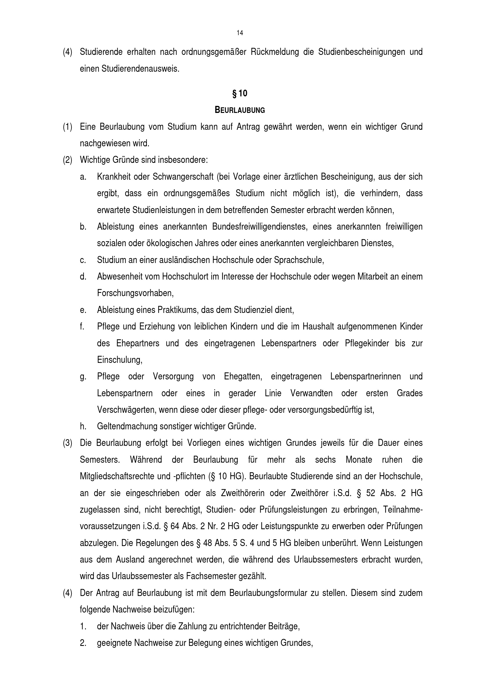 § 10 Beurlaubung