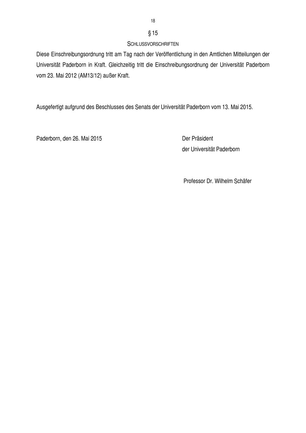 Einschreibungsordnung der Universität Paderborn : vom 26. Mai 2015
