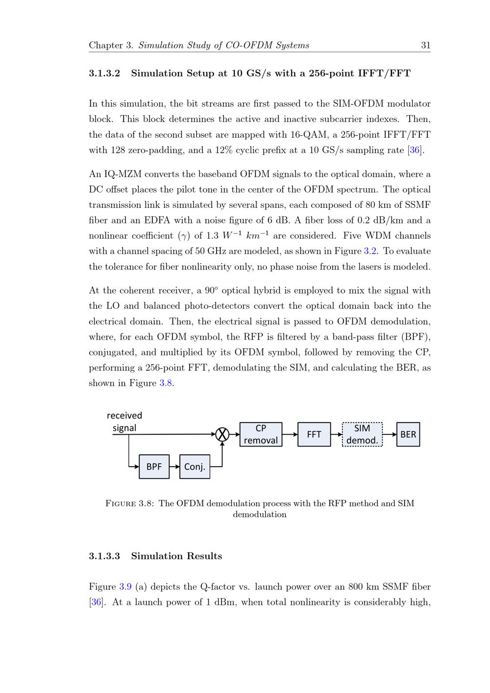 3.1 Study of Fiber Nonlinearities in CO-OFDM Systems