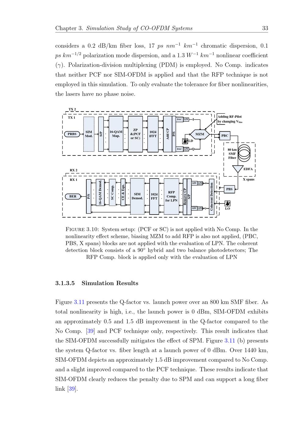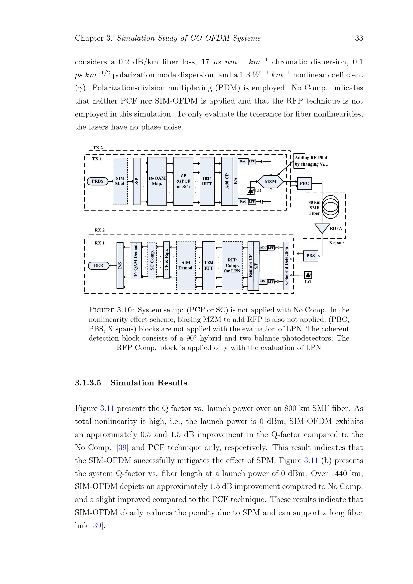 3.1 Study of Fiber Nonlinearities in CO-OFDM Systems