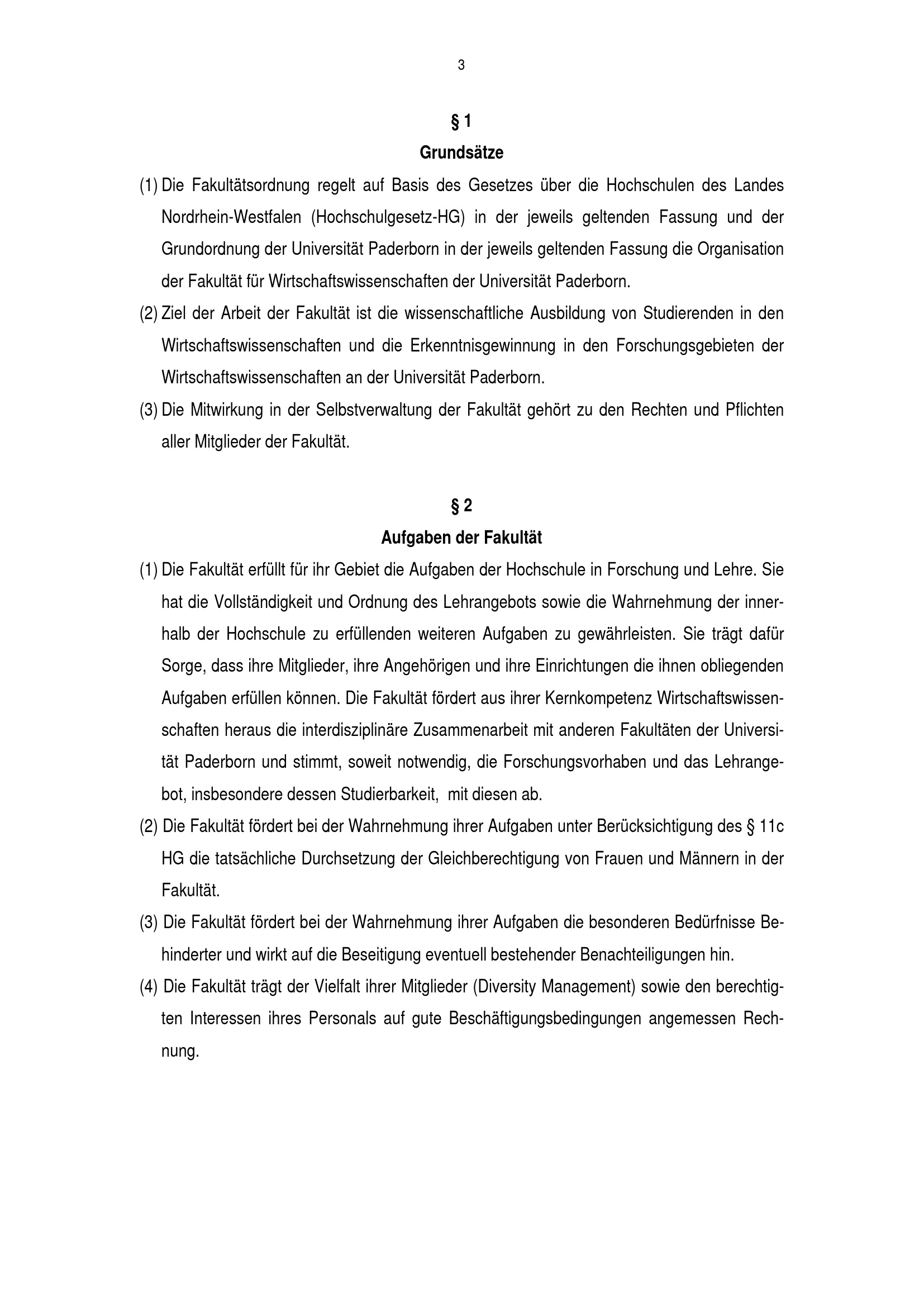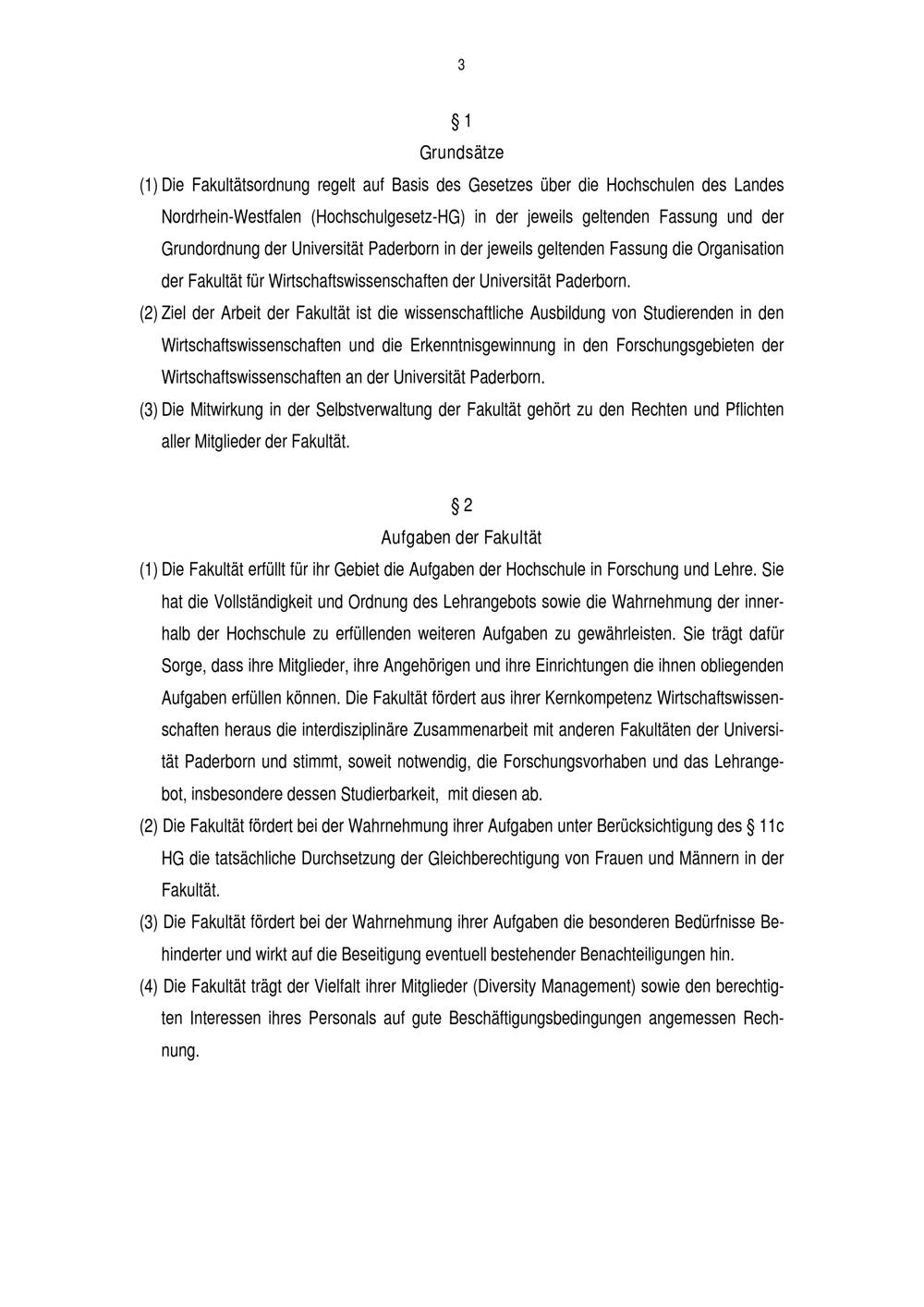 Fakultätsordnung der Fakultät für Wirtschaftswissenschaften an der Universität P[...]