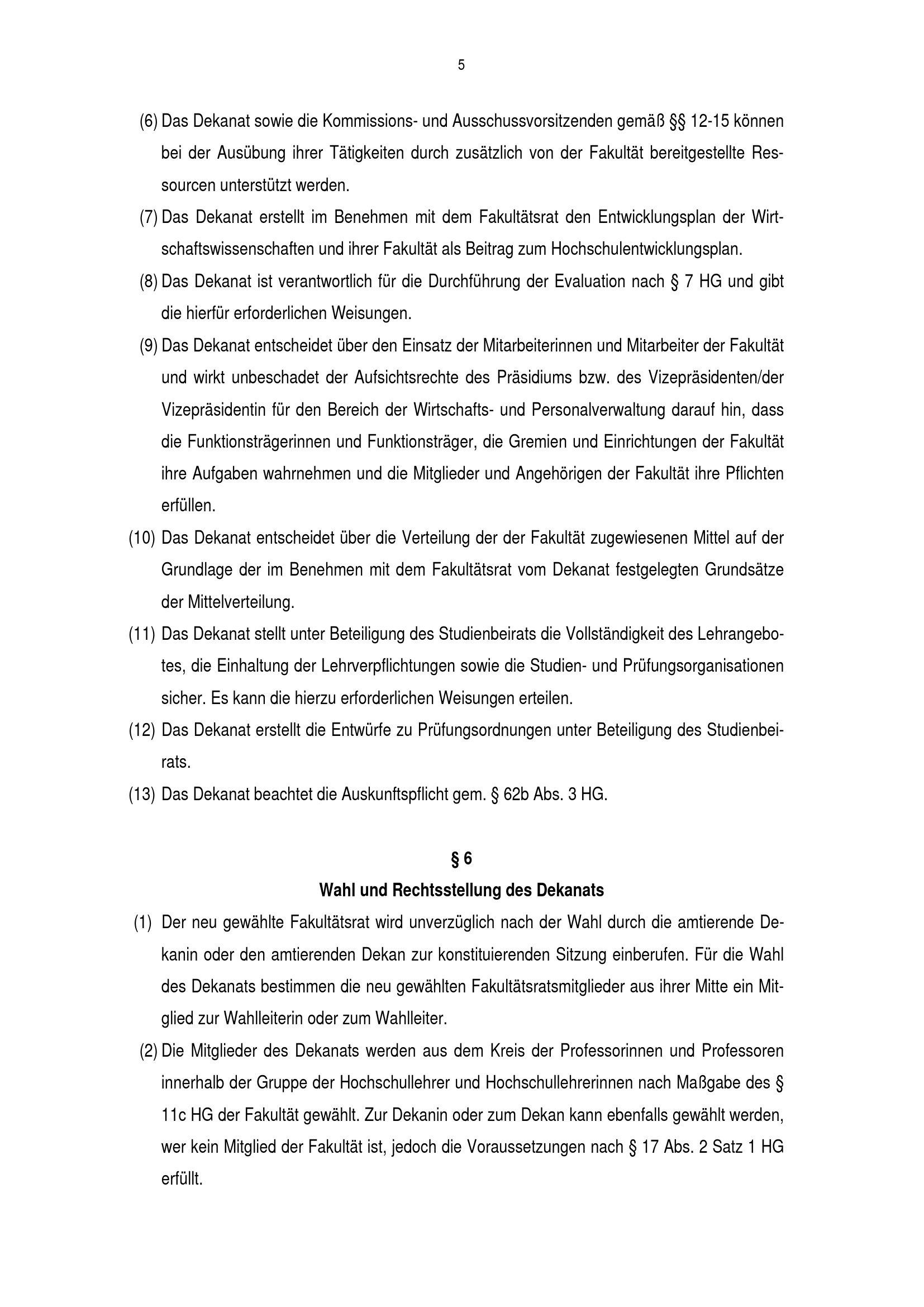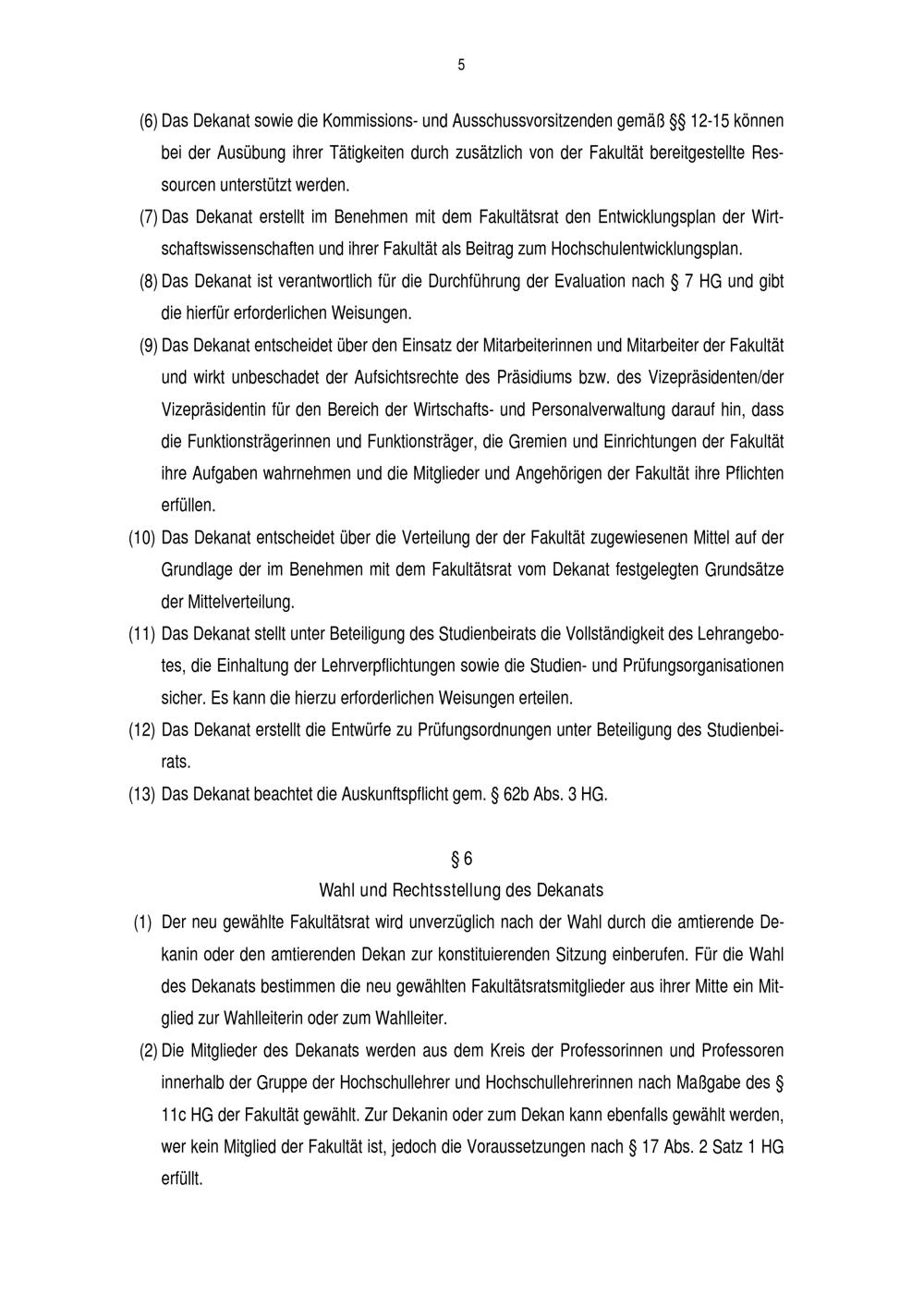 § 5 Aufgaben, Befugnisse und Zusammensetzung des Dekanats