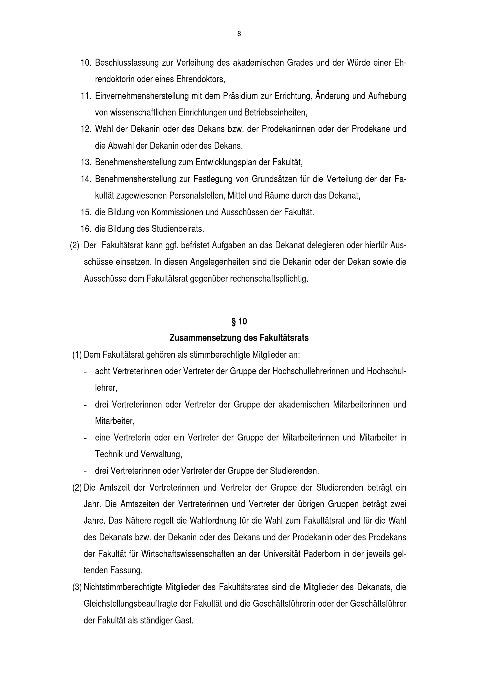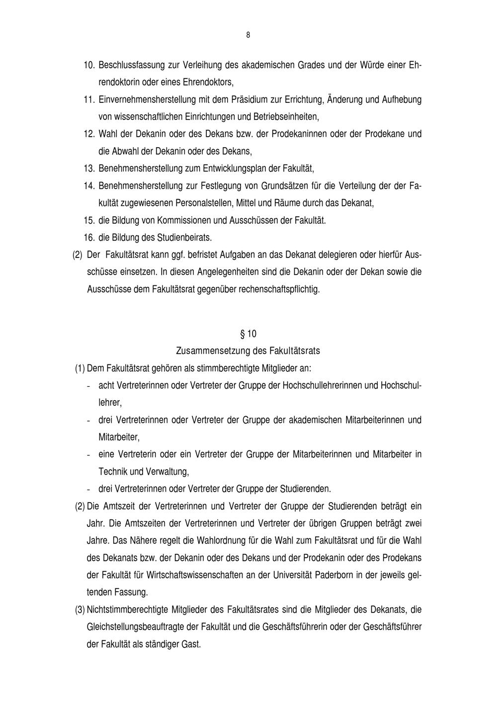 Fakultätsordnung der Fakultät für Wirtschaftswissenschaften an der Universität P[...]