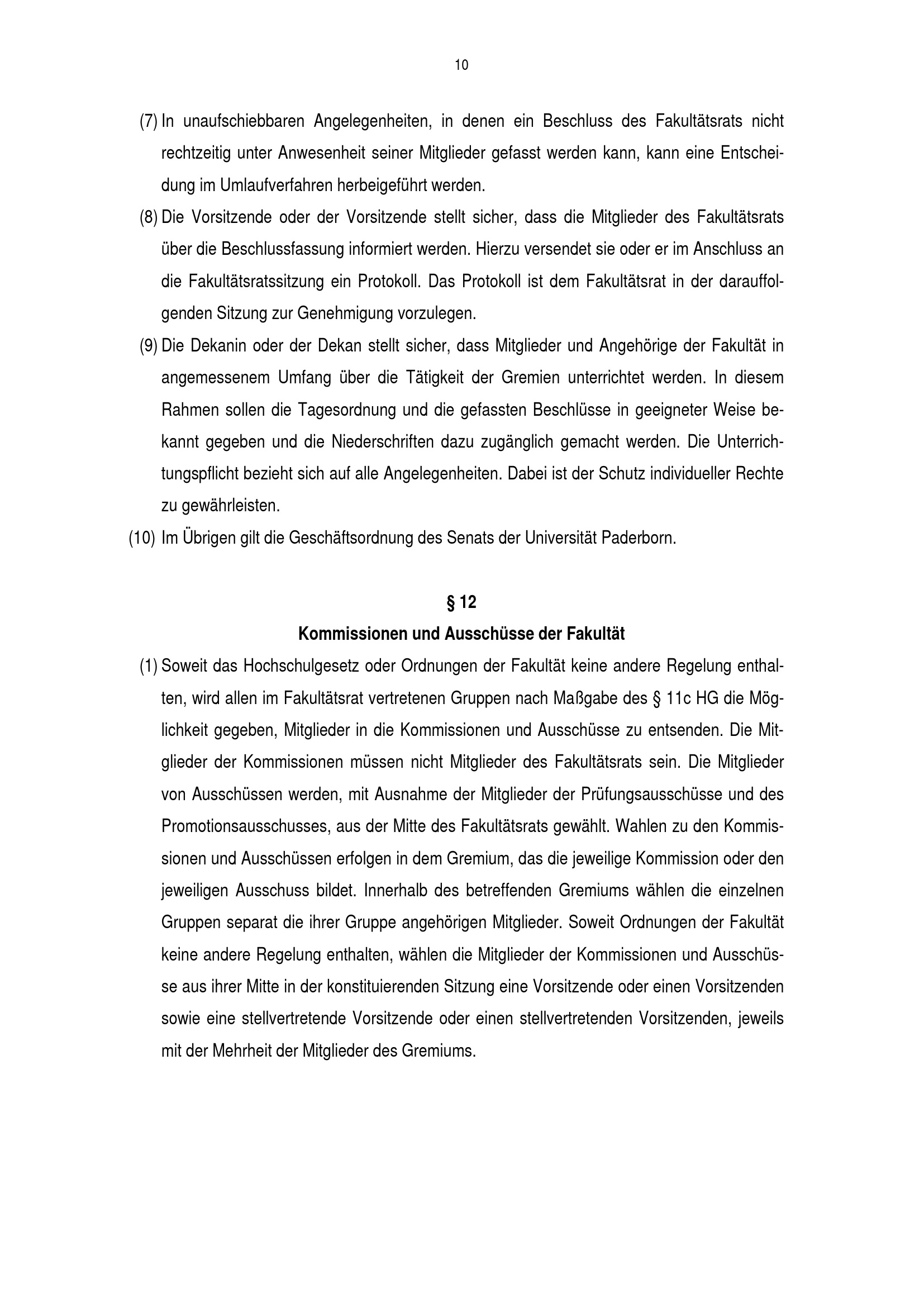 § 12 Kommissionen und Ausschüsse der Fakultät