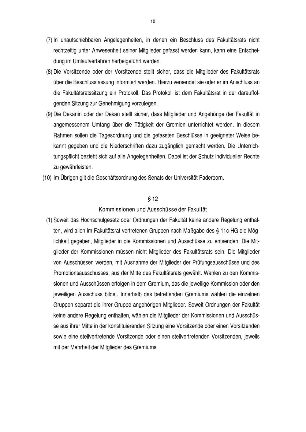 Fakultätsordnung der Fakultät für Wirtschaftswissenschaften an der Universität P[...]