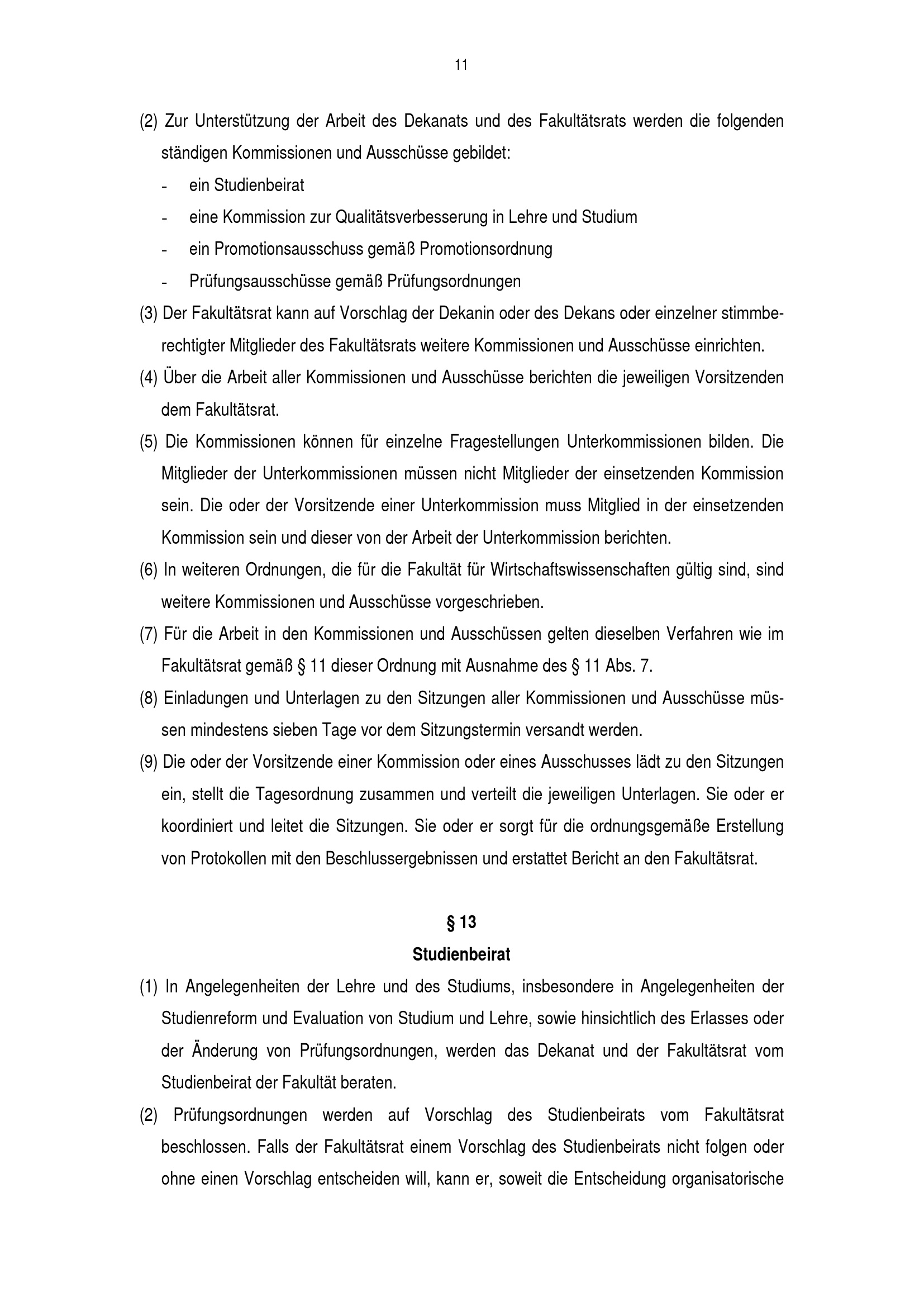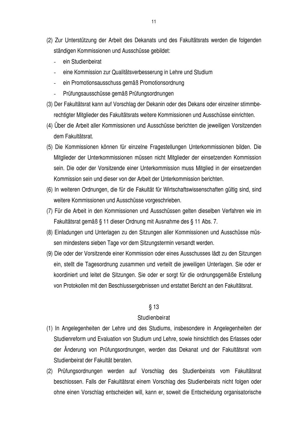 Fakultätsordnung der Fakultät für Wirtschaftswissenschaften an der Universität P[...]
