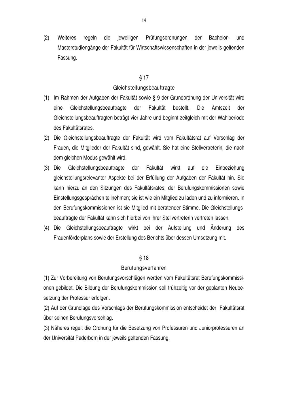 Fakultätsordnung der Fakultät für Wirtschaftswissenschaften an der Universität P[...]