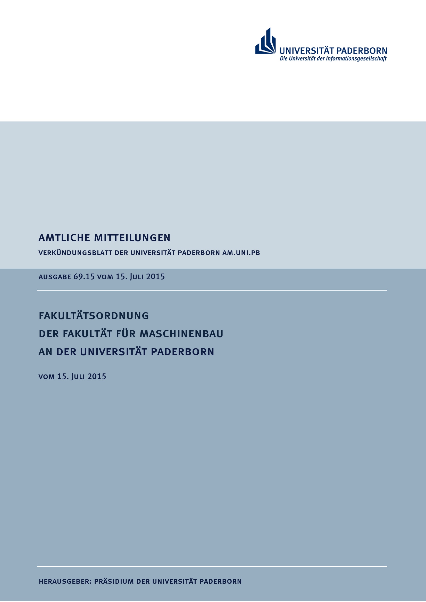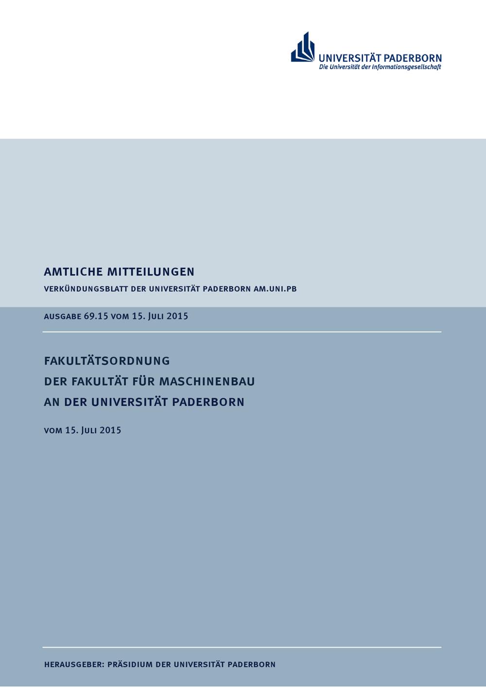 Fakultätsordnung der Fakultät für Maschinenbau an der Universität Paderborn : vom 15. Juli 2015