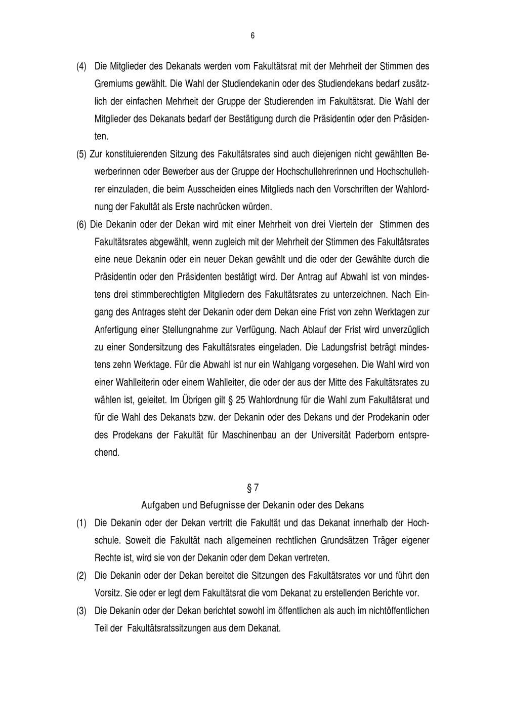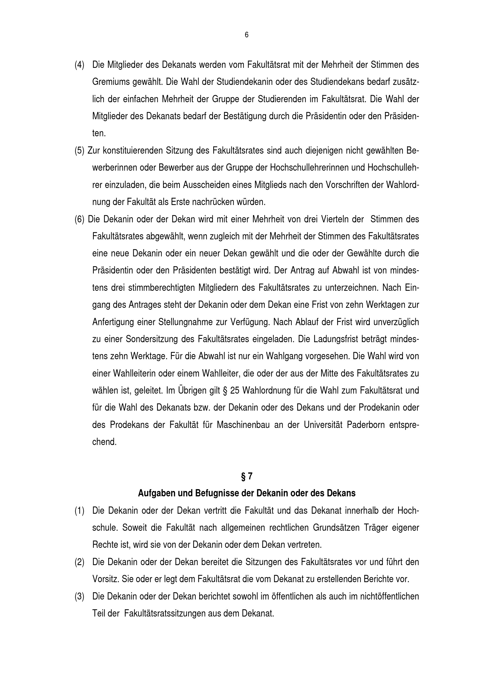 Fakultätsordnung der Fakultät für Maschinenbau an der Universität Paderborn
