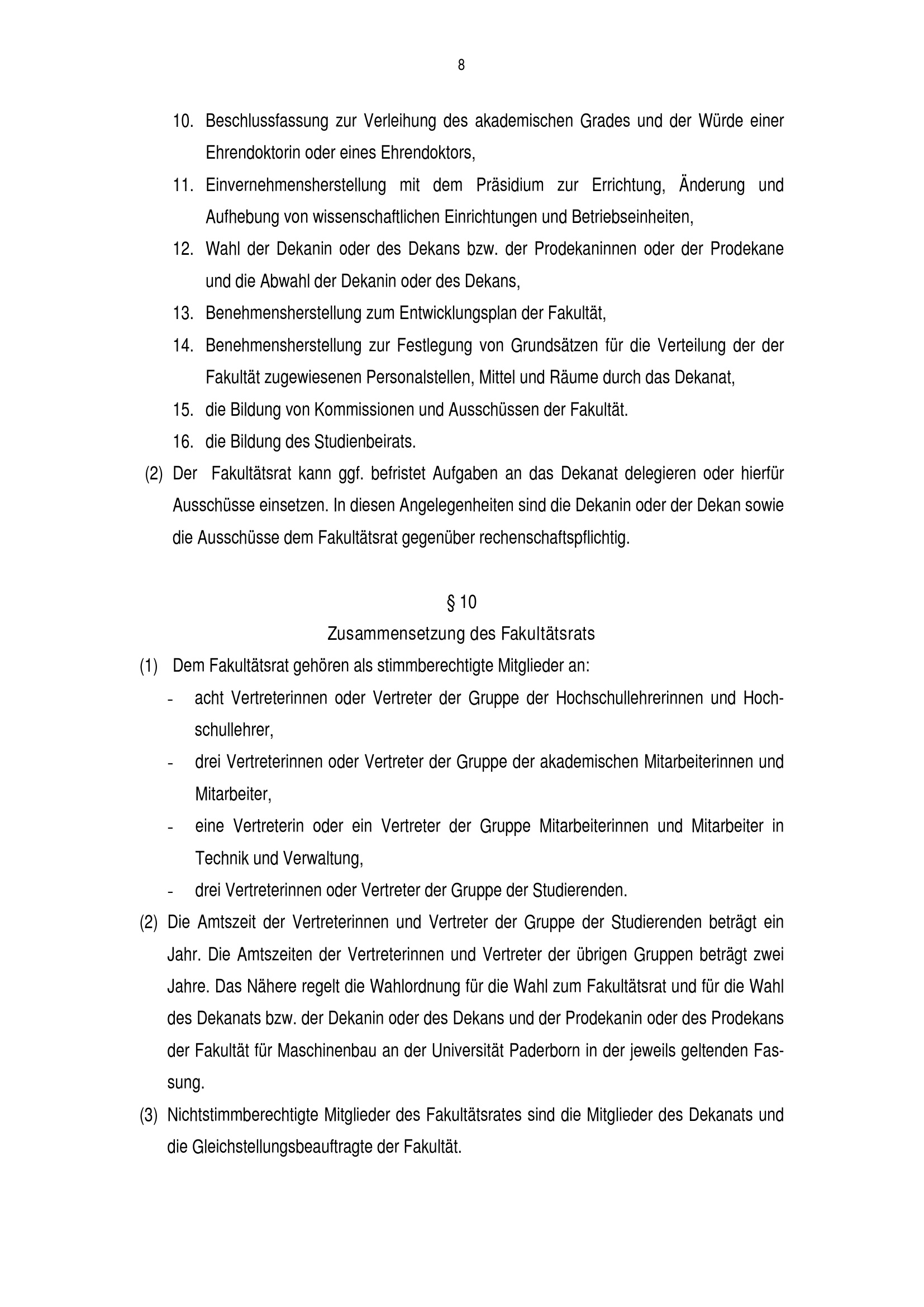 Fakultätsordnung der Fakultät für Maschinenbau an der Universität Paderborn