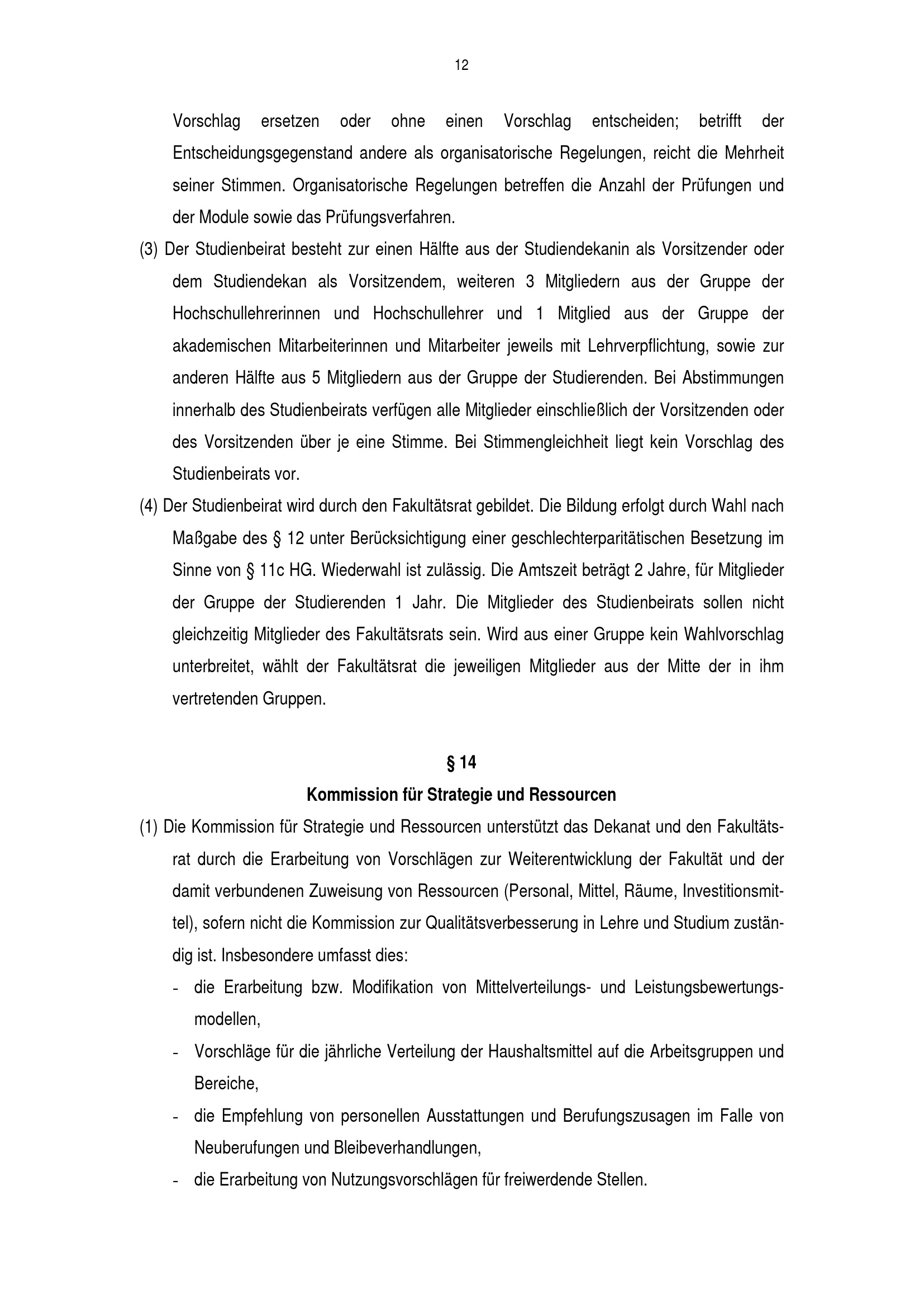 § 14 Kommission für Strategie und Ressourcen