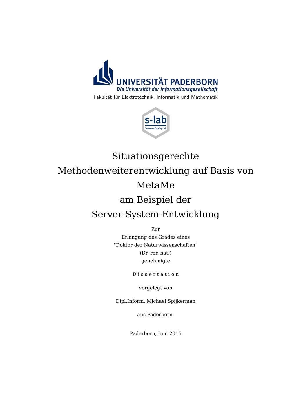 Situationsgerechte Methodenweiterentwicklung auf Basis von MetaMe am Beispiel der Server-System-Entwicklung / vorgelegt von Michael Spijkerman