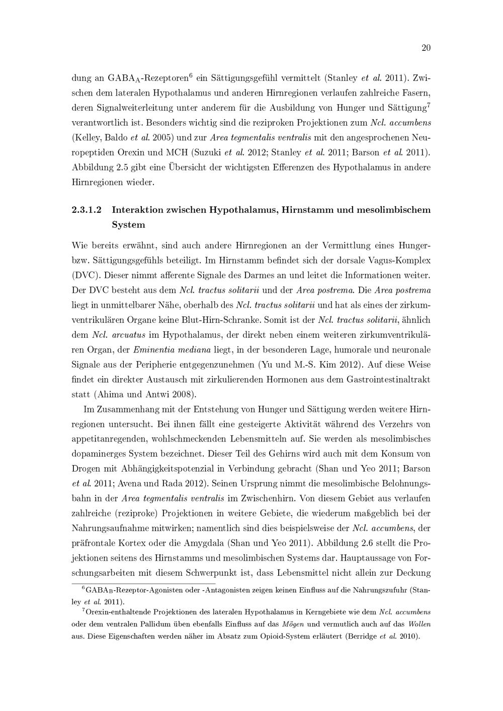 Interaktion zwischen Hypothalamus, Hirnstamm und mesolimbischem System