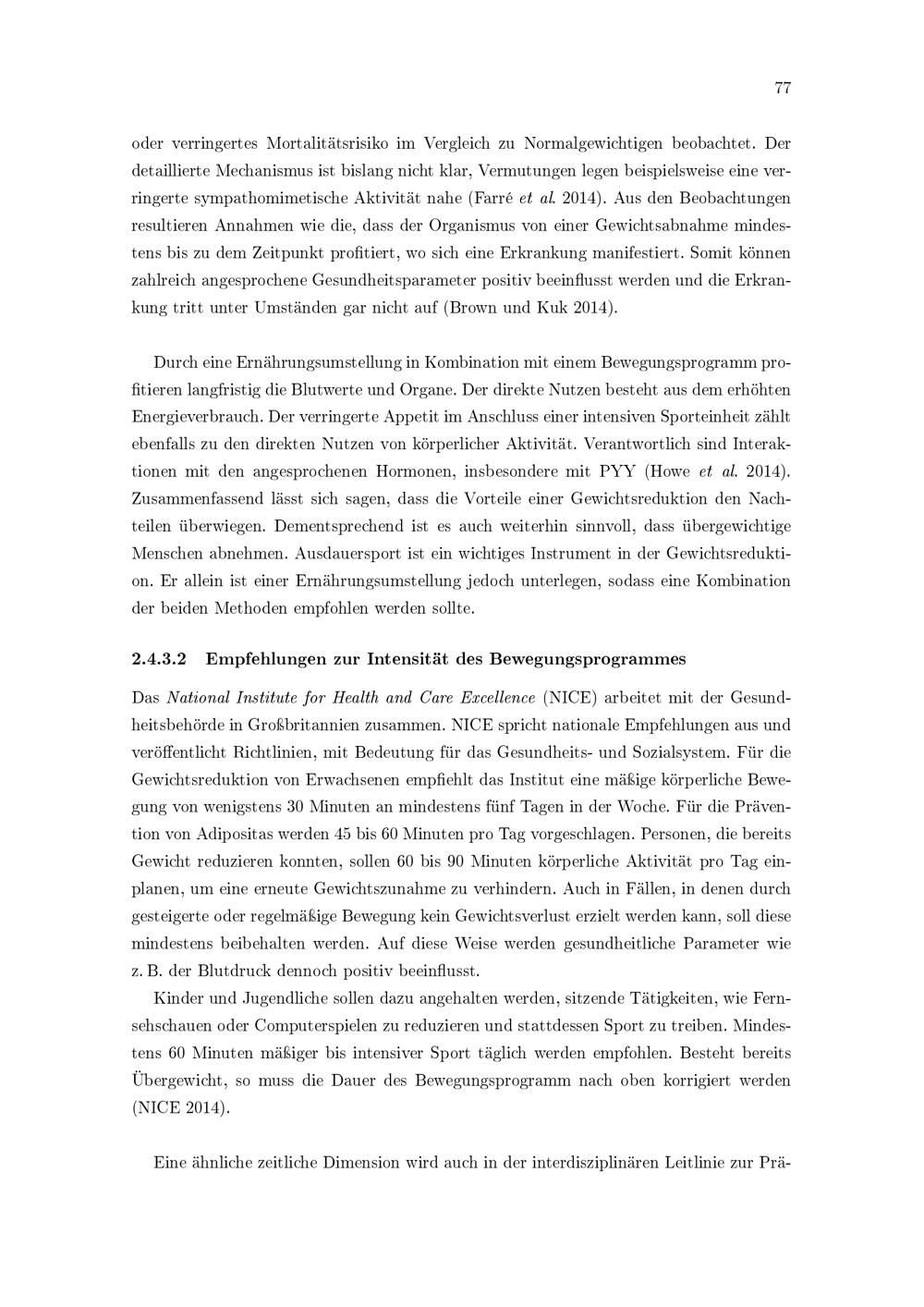 Empfehlungen zur Intensität des Bewegungsprogrammes