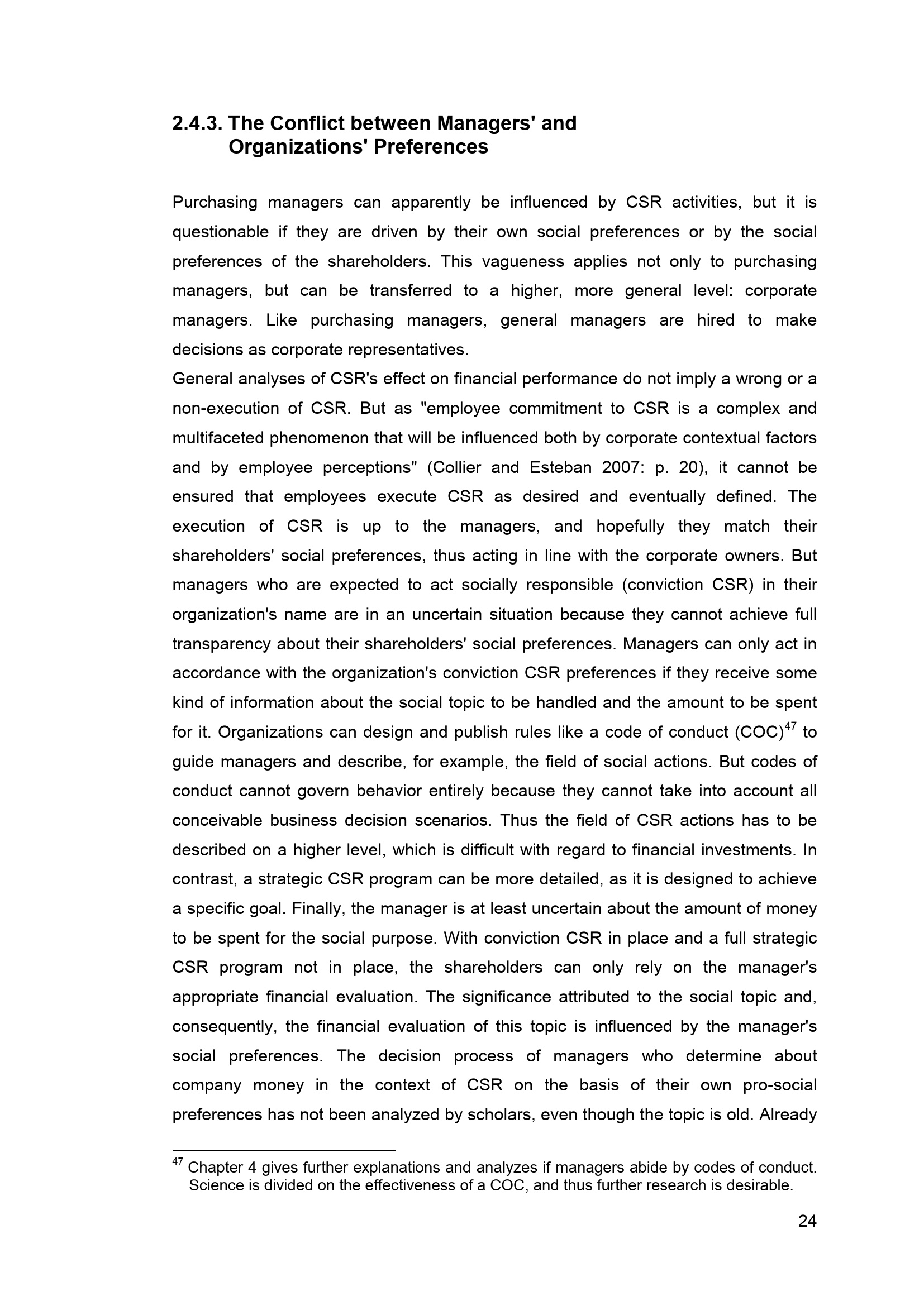 2.4.3. The Conflict between Managers' and Organizations' Preferences