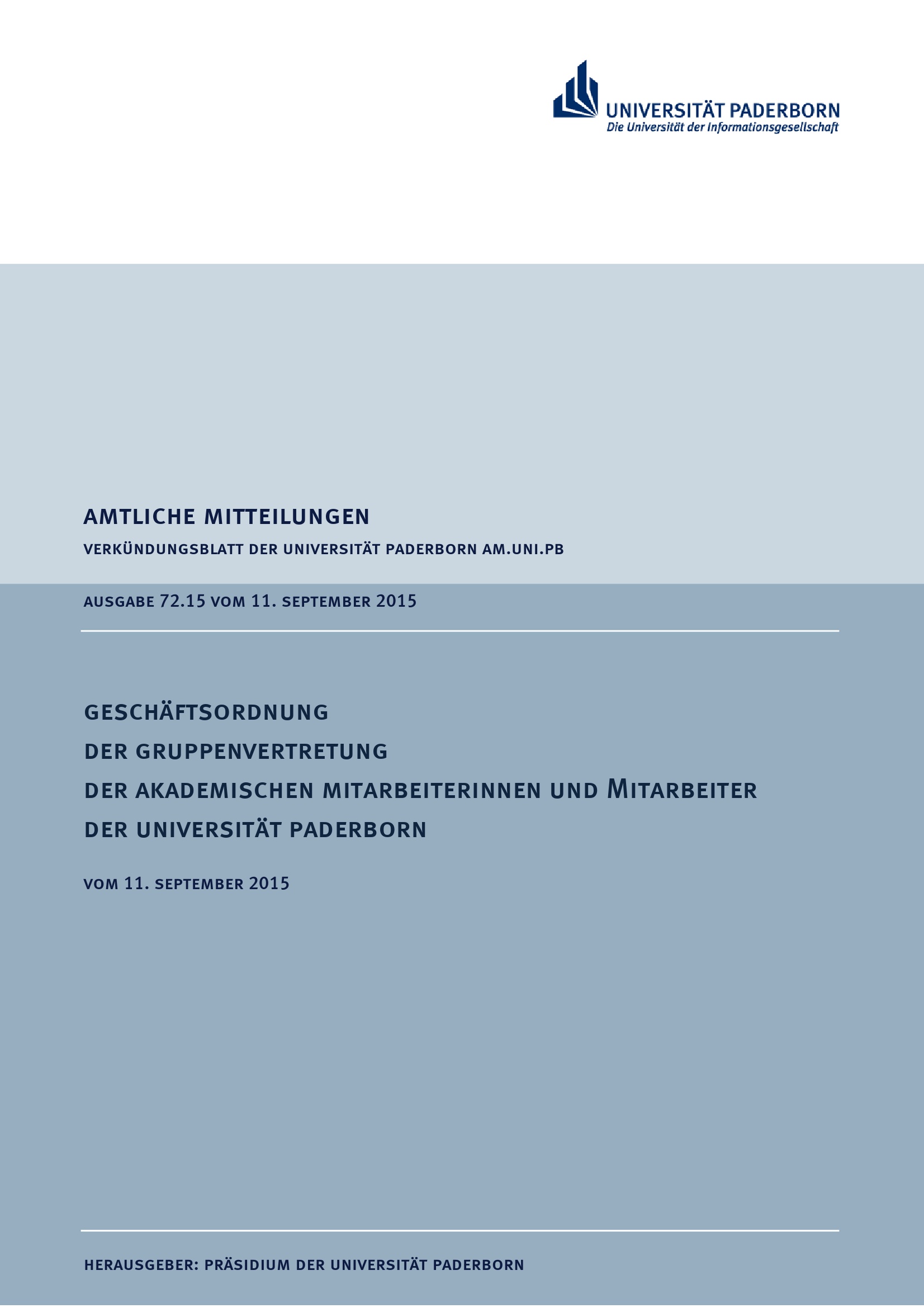 Geschäftsordnung der Gruppenvertretung der akademischen Mitarbeiterinnen und Mitarbeiter der Universität Paderborn : vom 11. September 2015