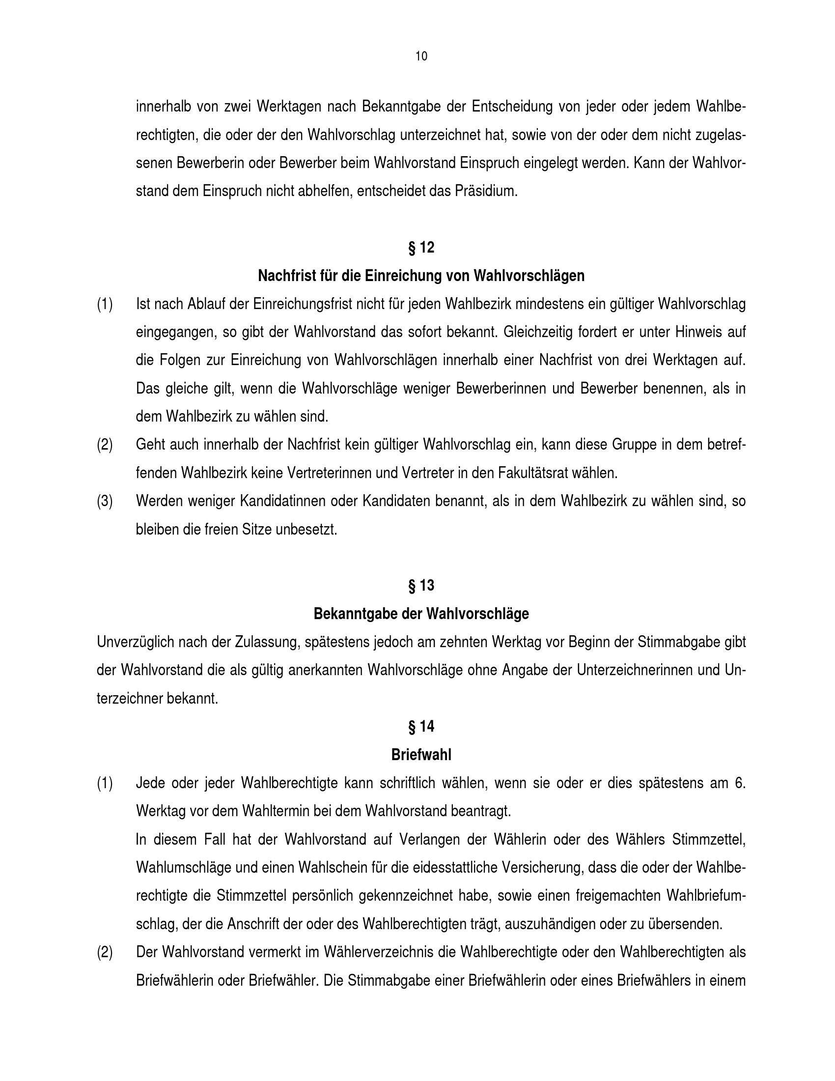Wahlordnung für die Wahl zum Fakultätsrat und für die Wahl des Dekanats bzw. der Dekanin oder des Dekans und der Prodekanin oder des Prodekans der Fakultät für Naturwissenschaften an der Universität Paderborn : vom 26. Mai 2015