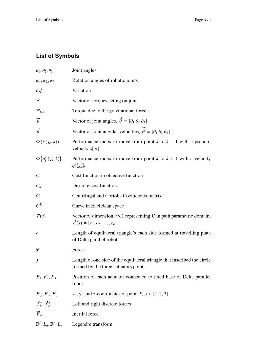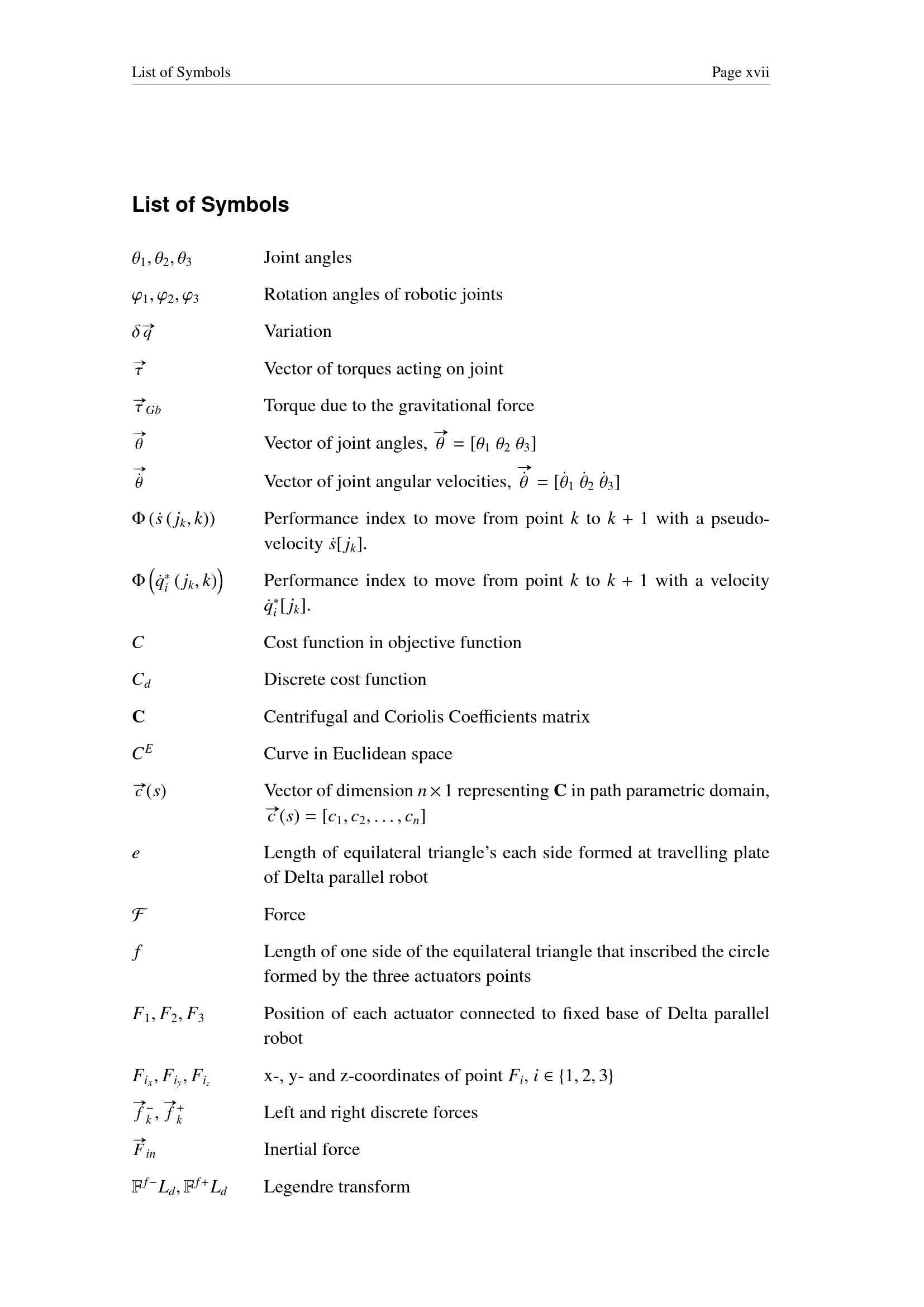List of Symbols