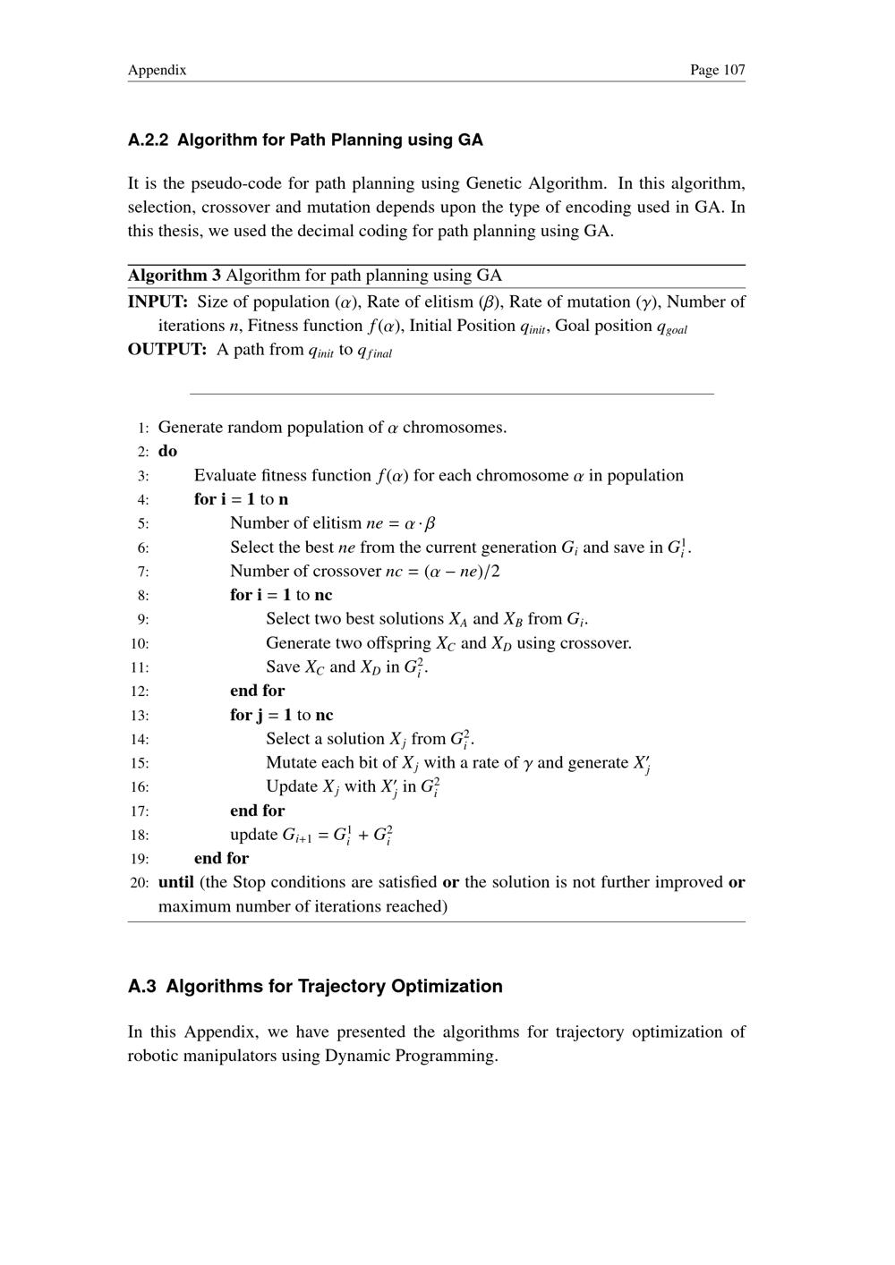 Algorithm for Path Planning using GA