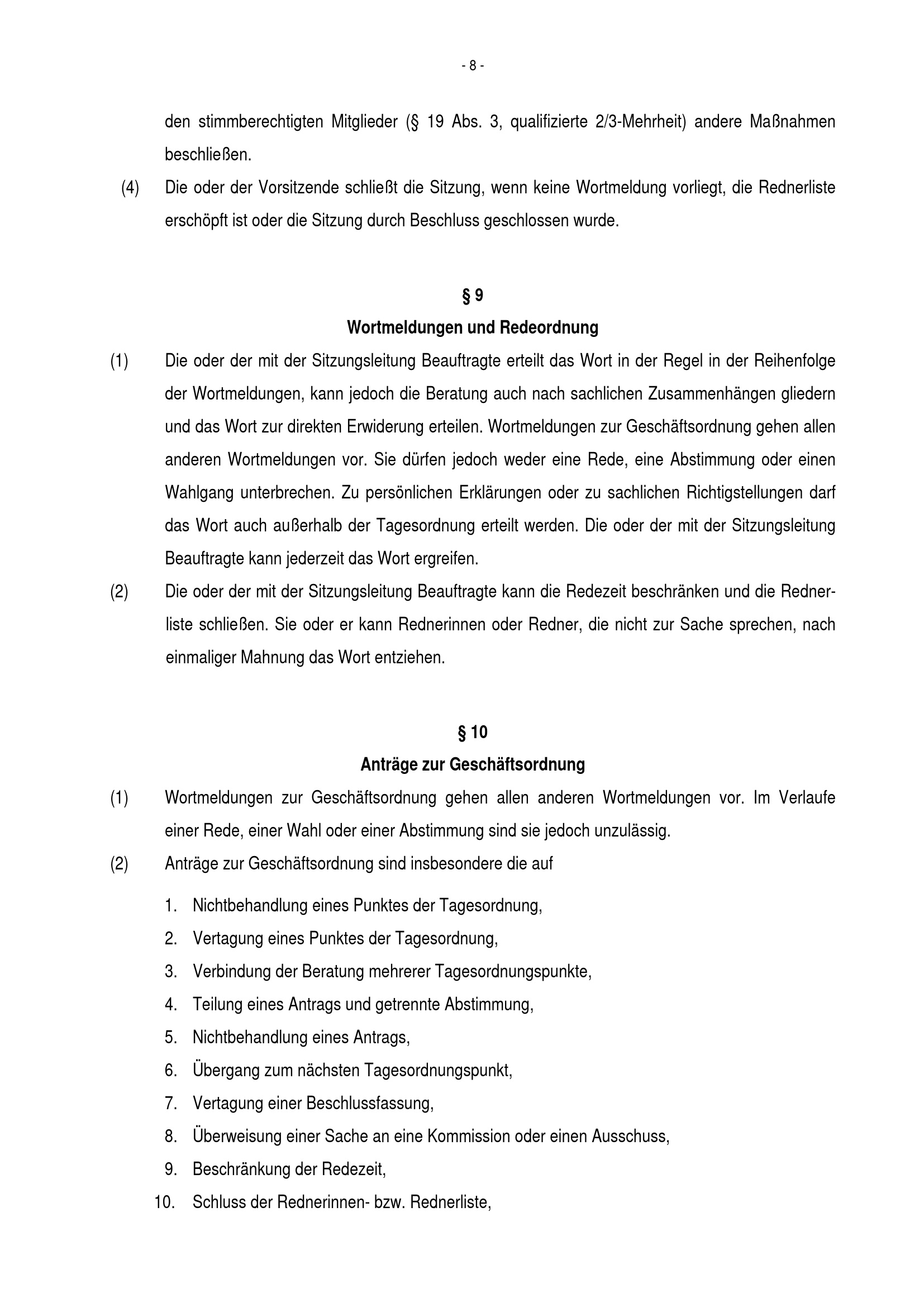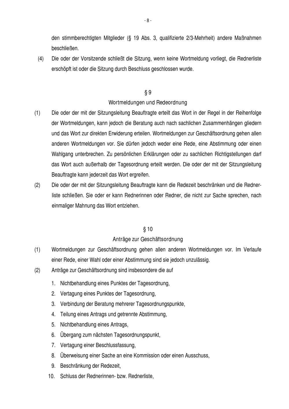 § 9 Wortmeldungen und Redeordnung