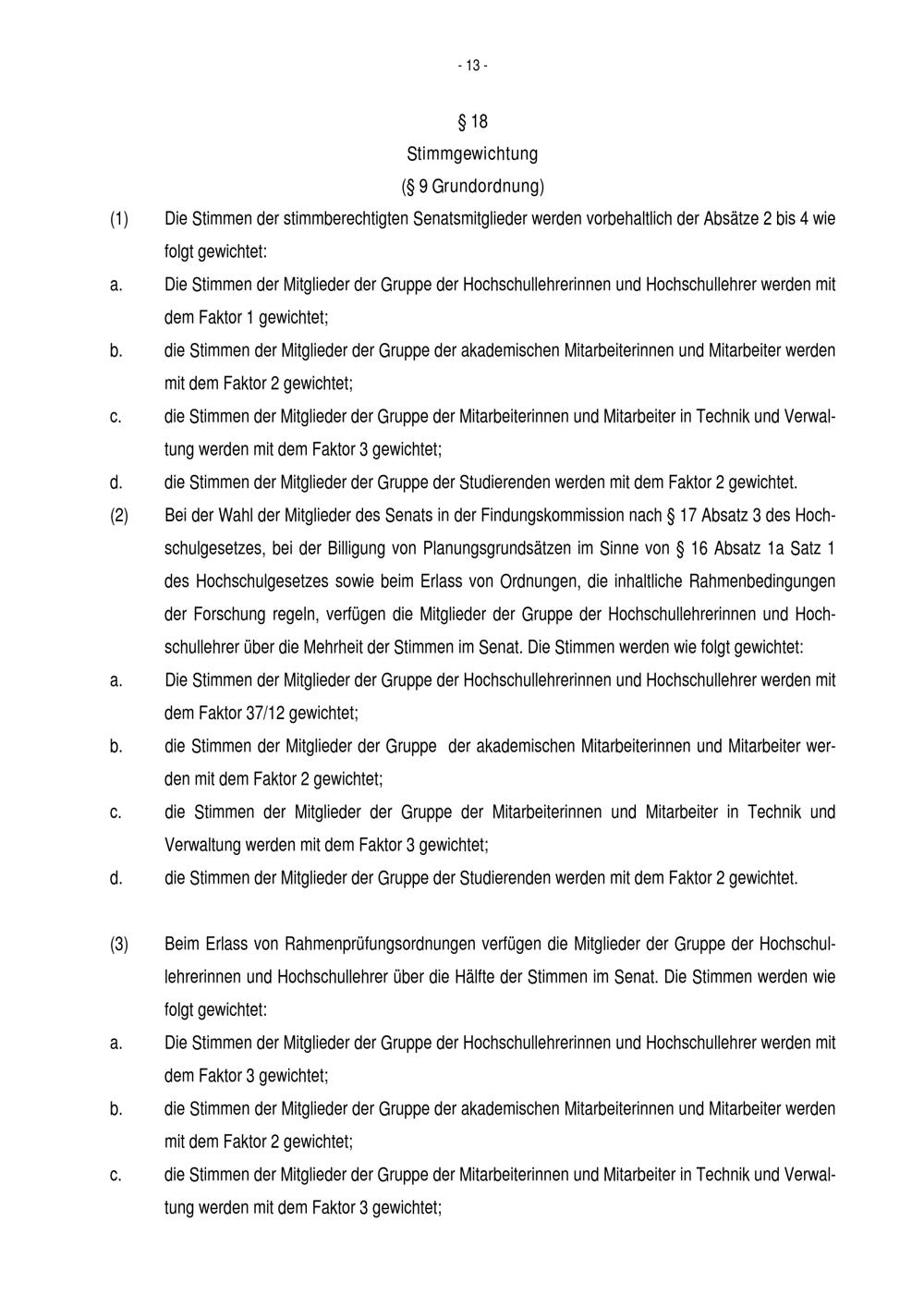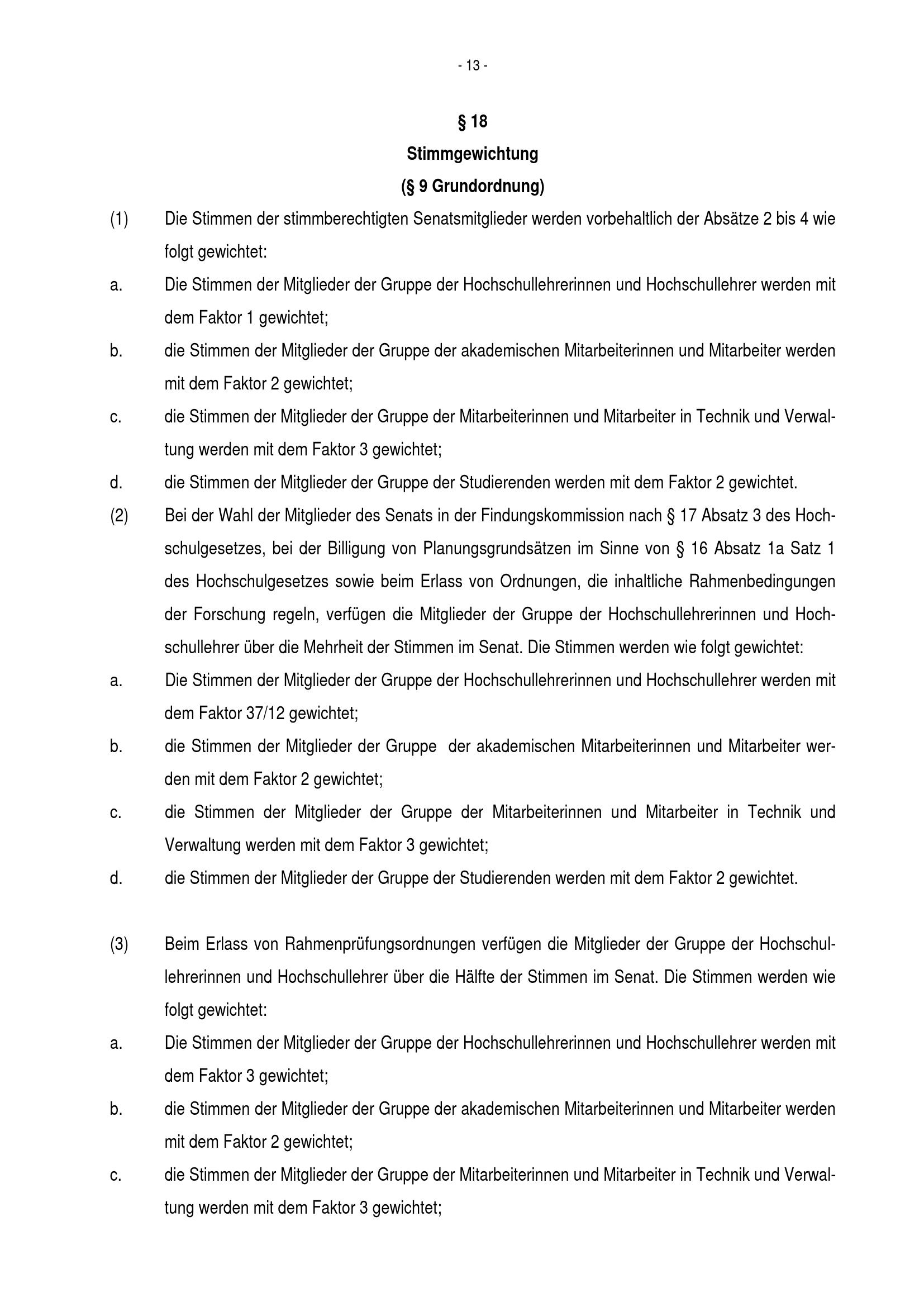 § 18 Stimmgewichtung (§ 9 Grundordnung)
