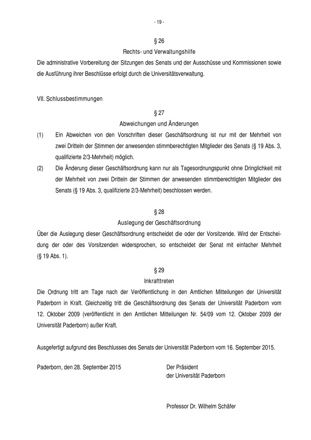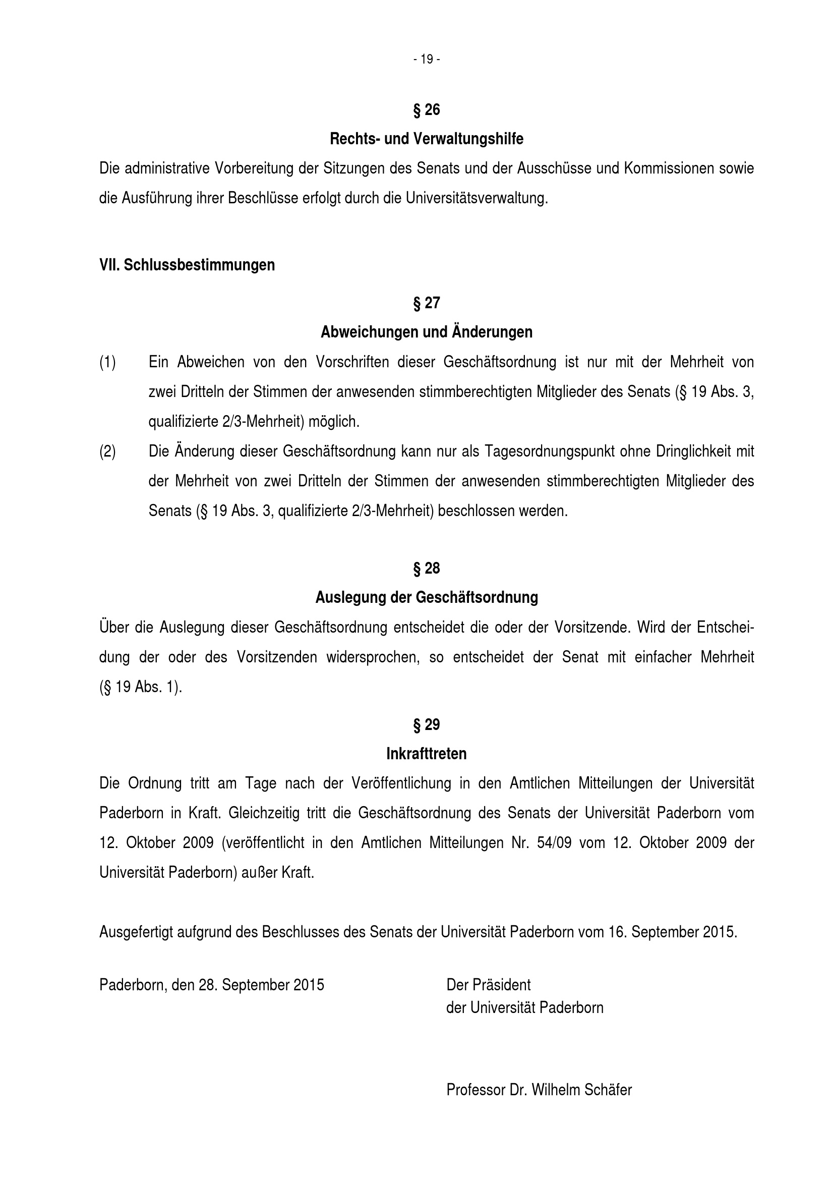Geschäftsordnung für den Senat der Universität Paderborn : vom 28. September 2015