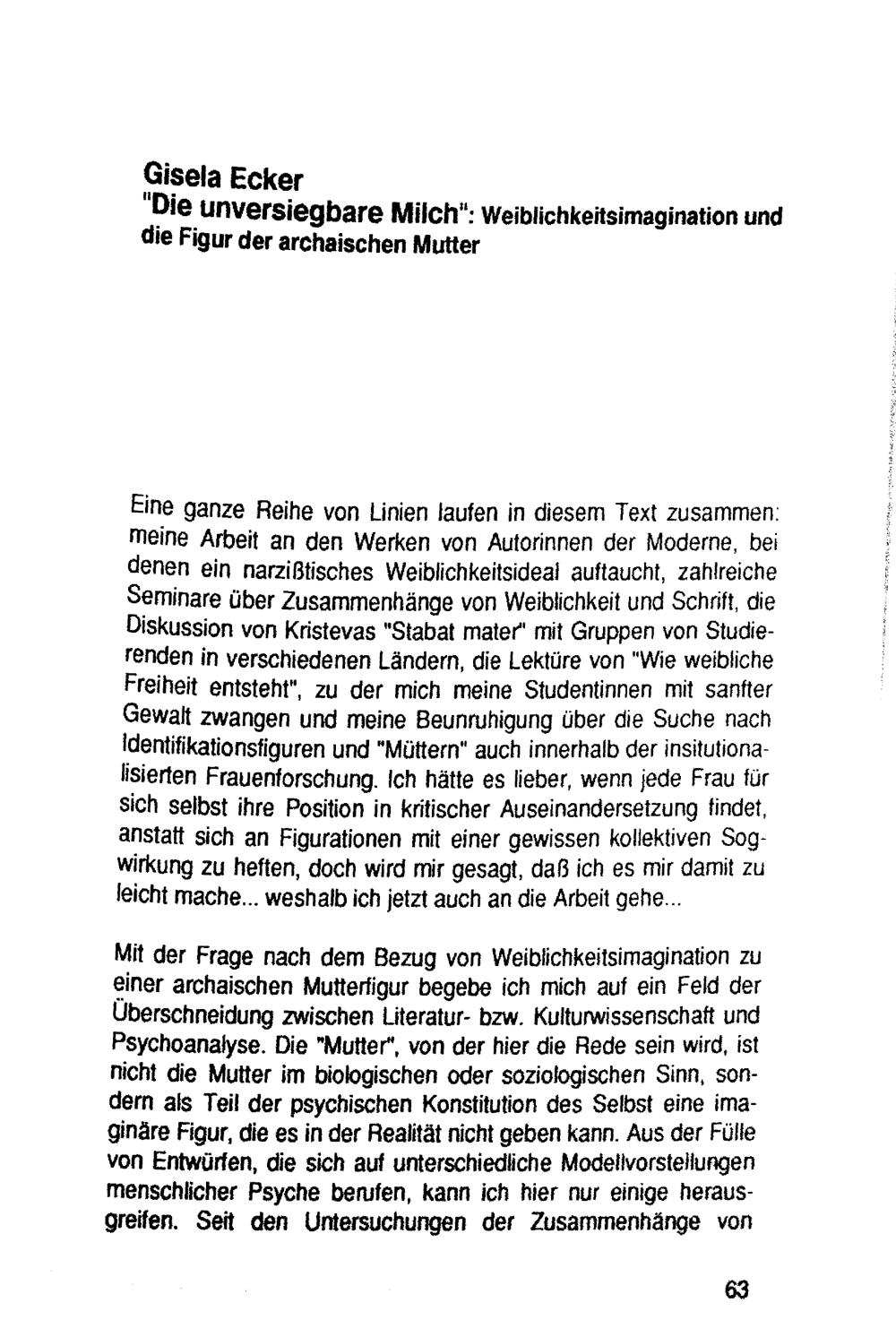 "Die unversiegbare Milch" : Weiblichkeitsimaginationen und die Figur der archaischen Mutter : Weiblichkeitsimaginationen und die Figur der archaischen Mutter