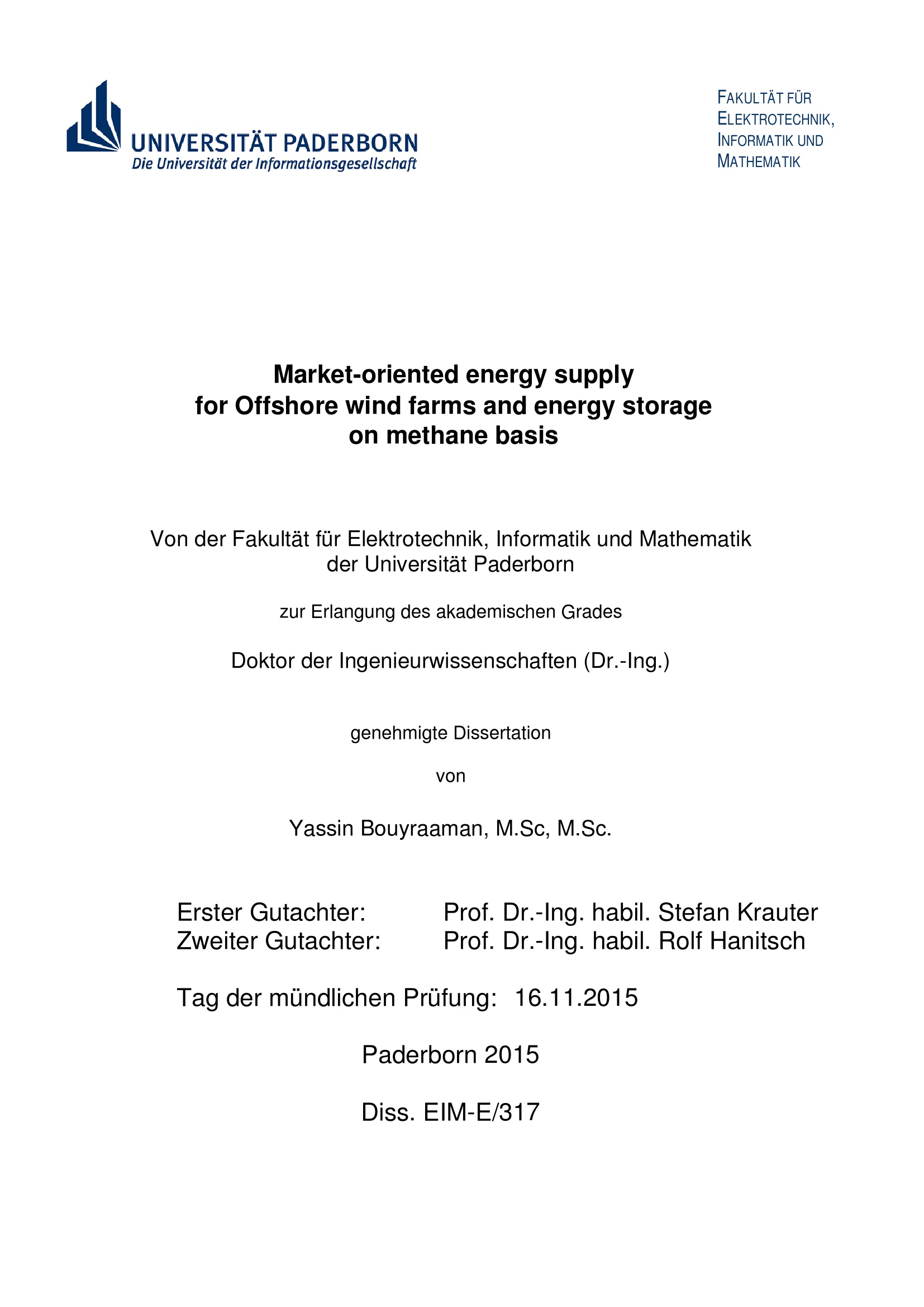 Market-oriented energy supply for offshore wind farms and energy storage on methane[...]