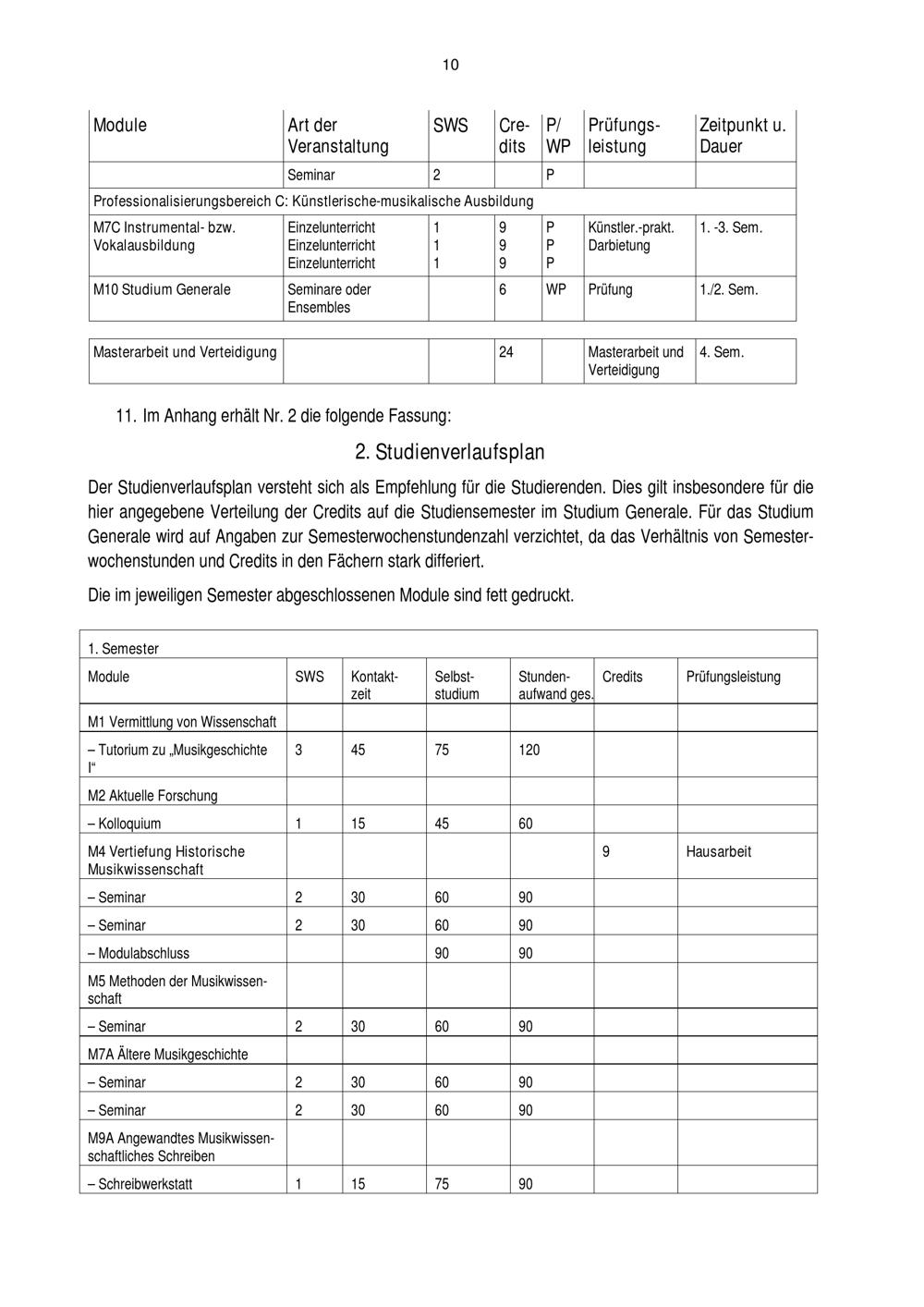 Zweite Satzung zur Änderung der Prüfungsordnung für den Masterstudiengang Musikwissenschaft[...]