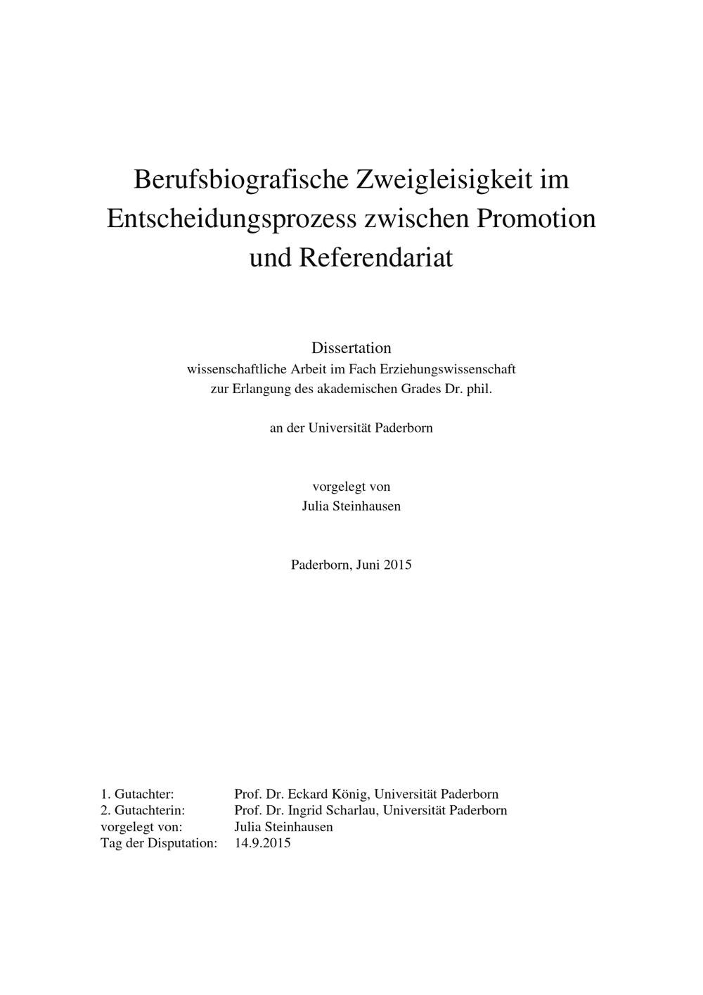 Berufsbiografische Zweigleisigkeit im Entscheidungsprozess zwischen Promotion und Referendariat