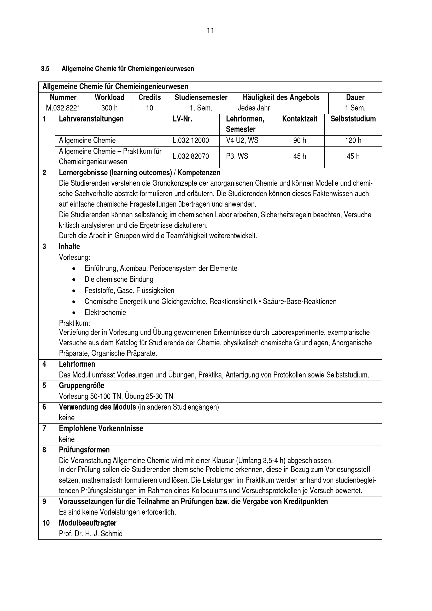 3.5 Allgemeine Chemie für Chemieingenieurwesen