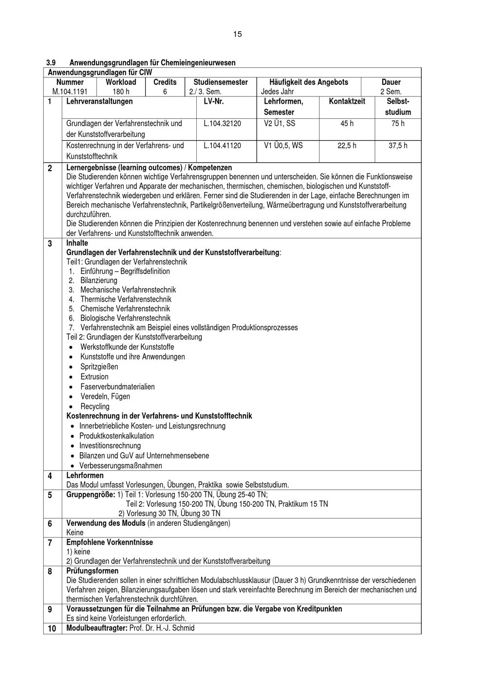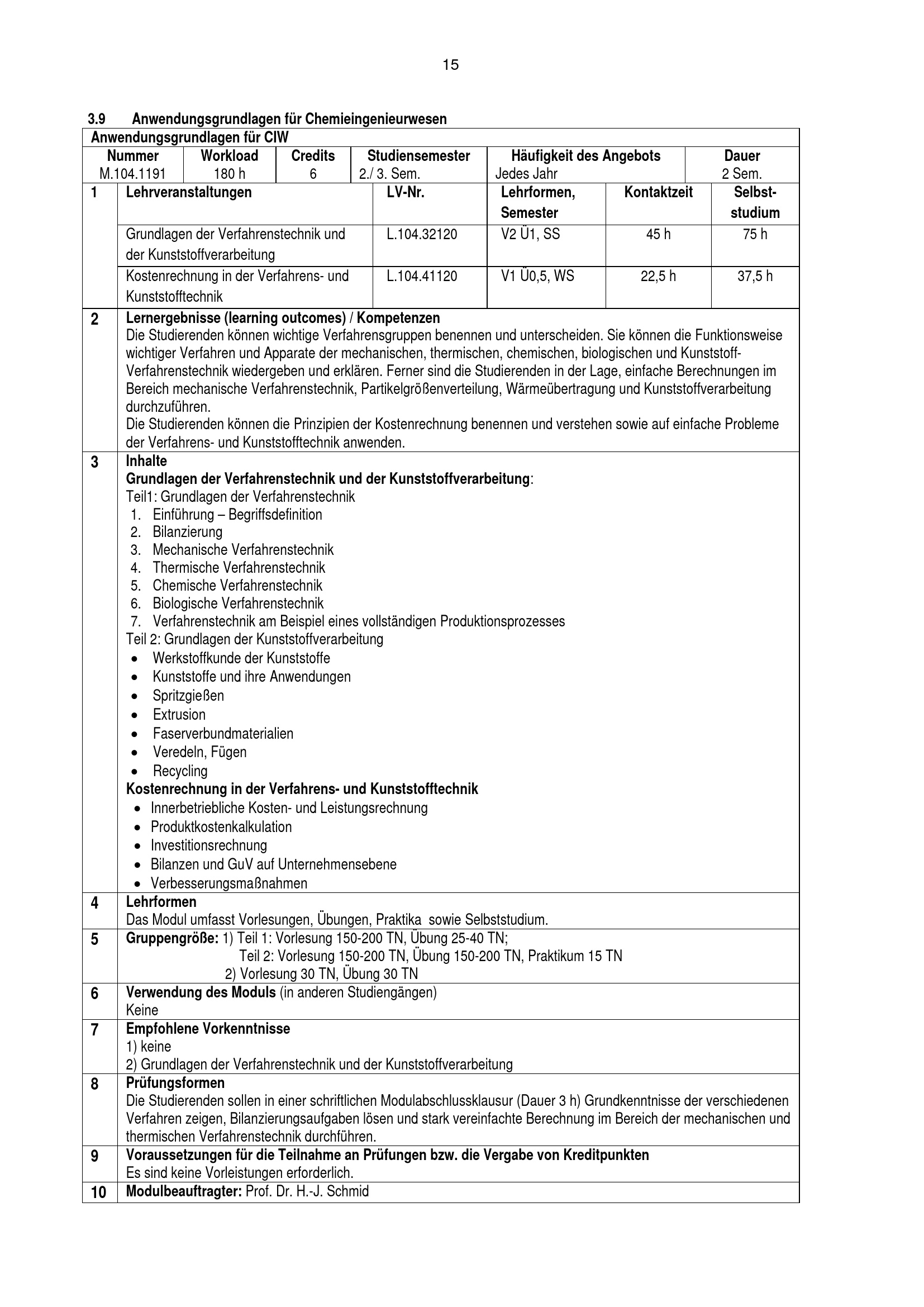 3.9 Anwendungsgrundlagen für Chemieingenieurwesen
