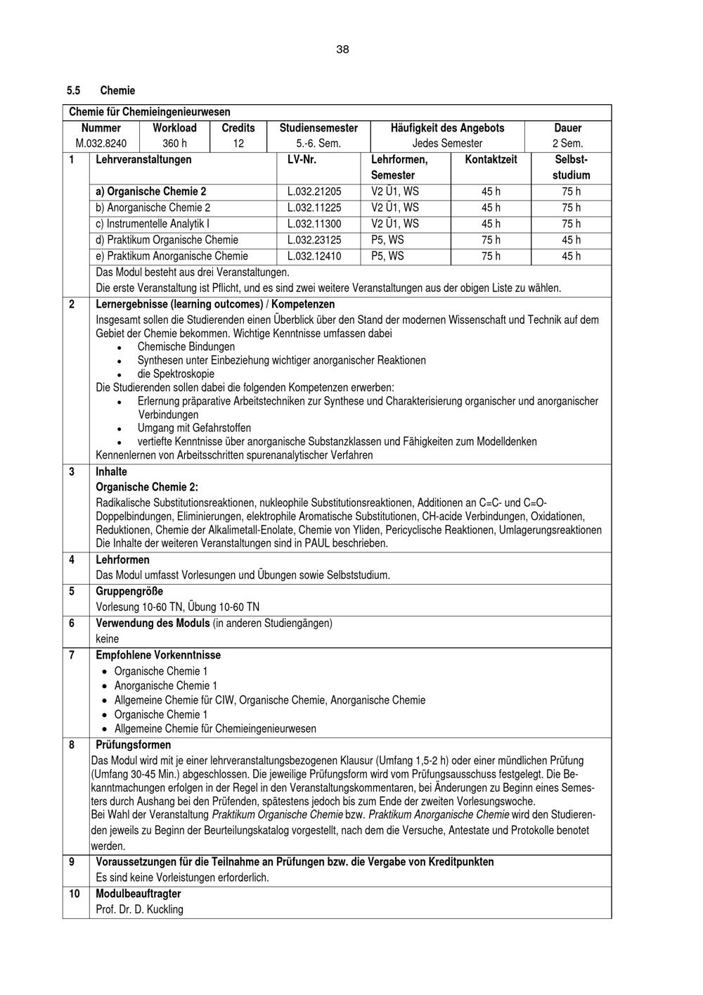 Zweite Satzung zur Änderung der Prüfungsordnung für den Bachelorstudiengang Chemieingenieurwesen[...]