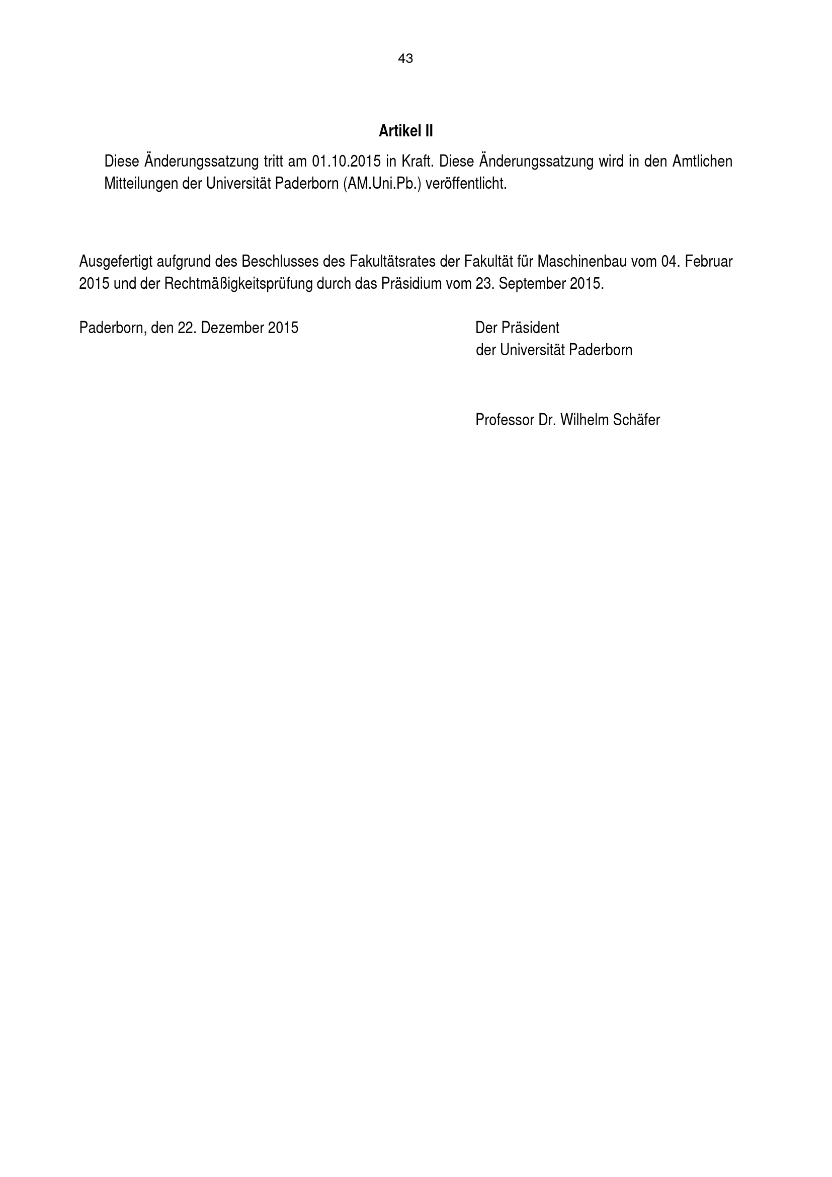 Zweite Satzung zur Änderung der Prüfungsordnung für den Bachelorstudiengang Chemieingenieurwesen der Fakultät für Maschinenbau an der Universität Paderborn : vom 22. Dezember 2015