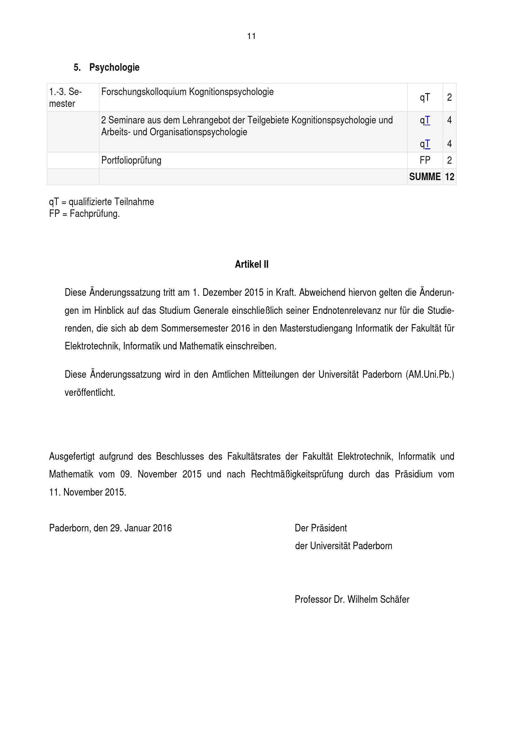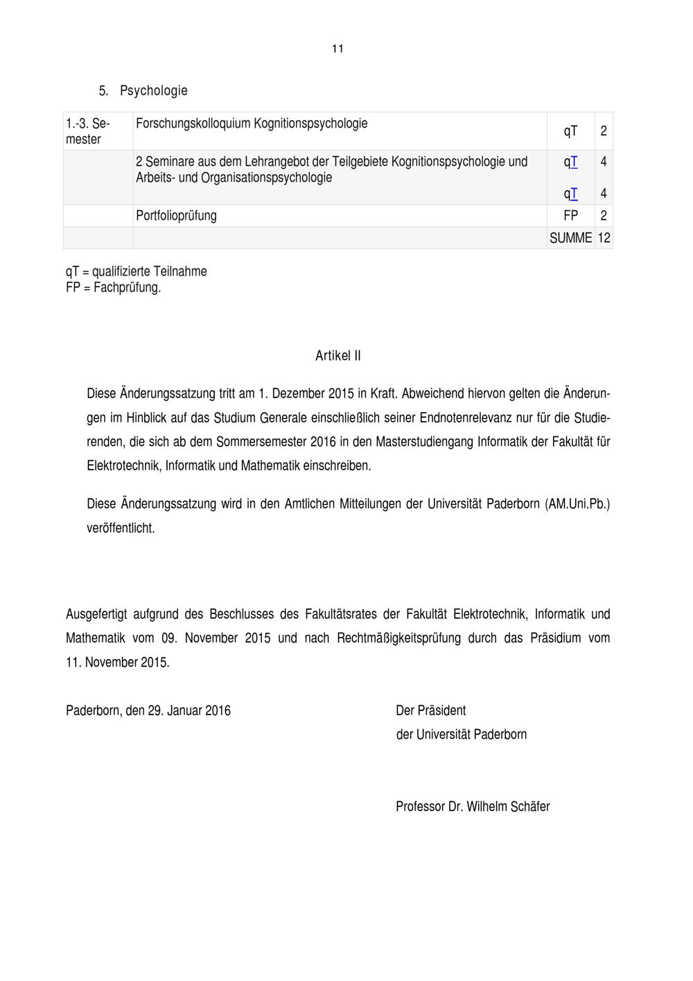 Satzung zur Änderung der Prüfungsordnung für den Masterstudiengang Informatik der Fakultät für Elektrotechnik, Informatik und Mathematik an der Universität Paderborn : vom 29. Januar 2016
