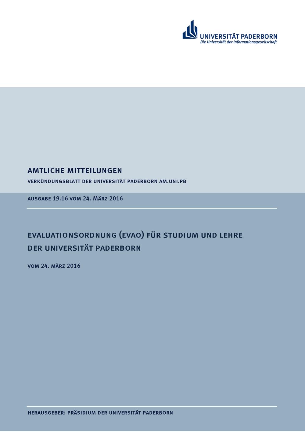 Evaluationsordnung (EvaO) für Studium und Lehre der Universität Paderborn : vom 24. März 2016