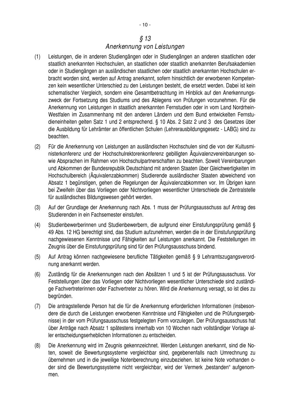 § 13 Anerkennung von Leistungen