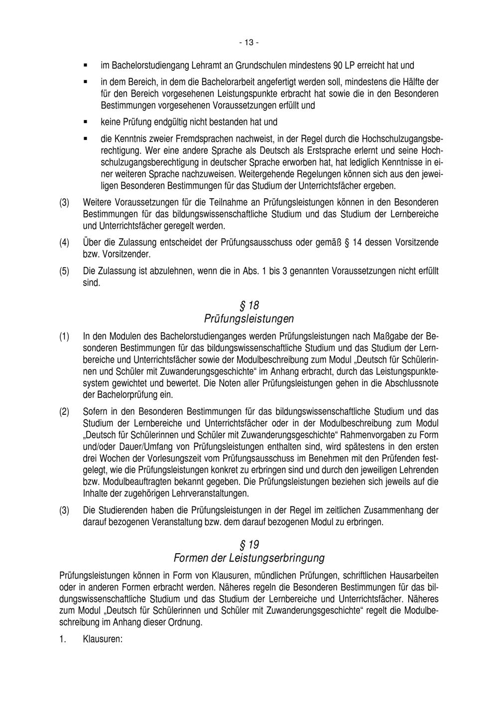 Allgemeine Bestimmungen der Prüfungsordnung für den Bachelorstudiengang Lehramt an[...]