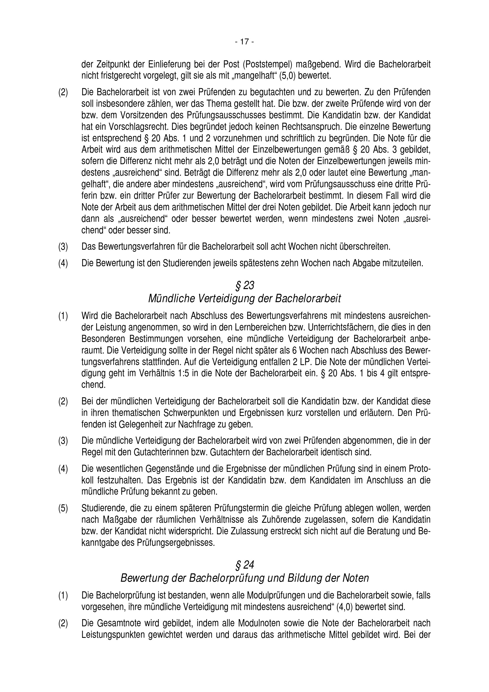 § 23 Mündliche Verteidigung der Bachelorarbeit