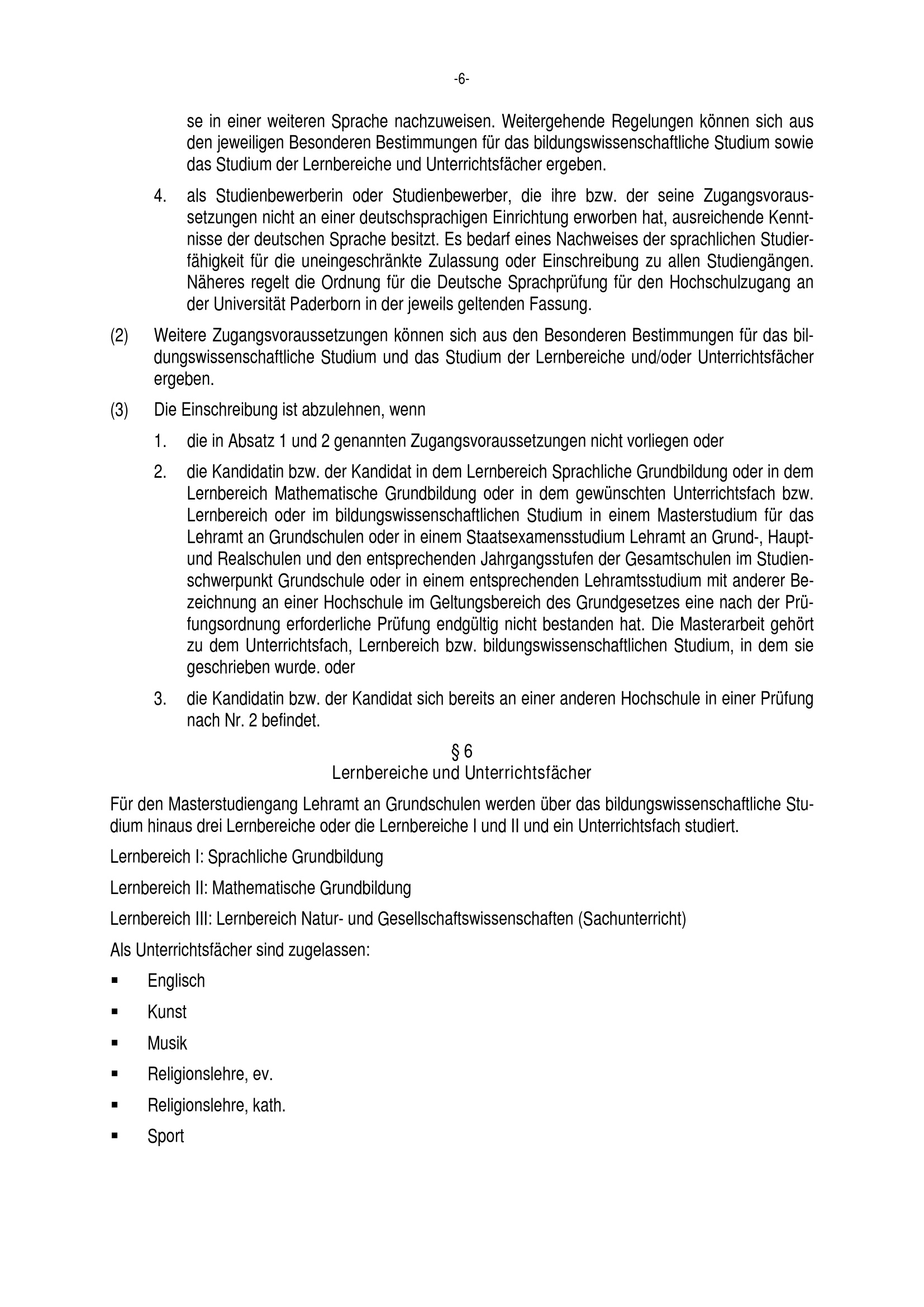 Allgemeine Bestimmungen der Prüfungsordnung für den Masterstudiengang Lehramt an Grundschulen an der Universität Paderborn : vom 22. Juli 2016